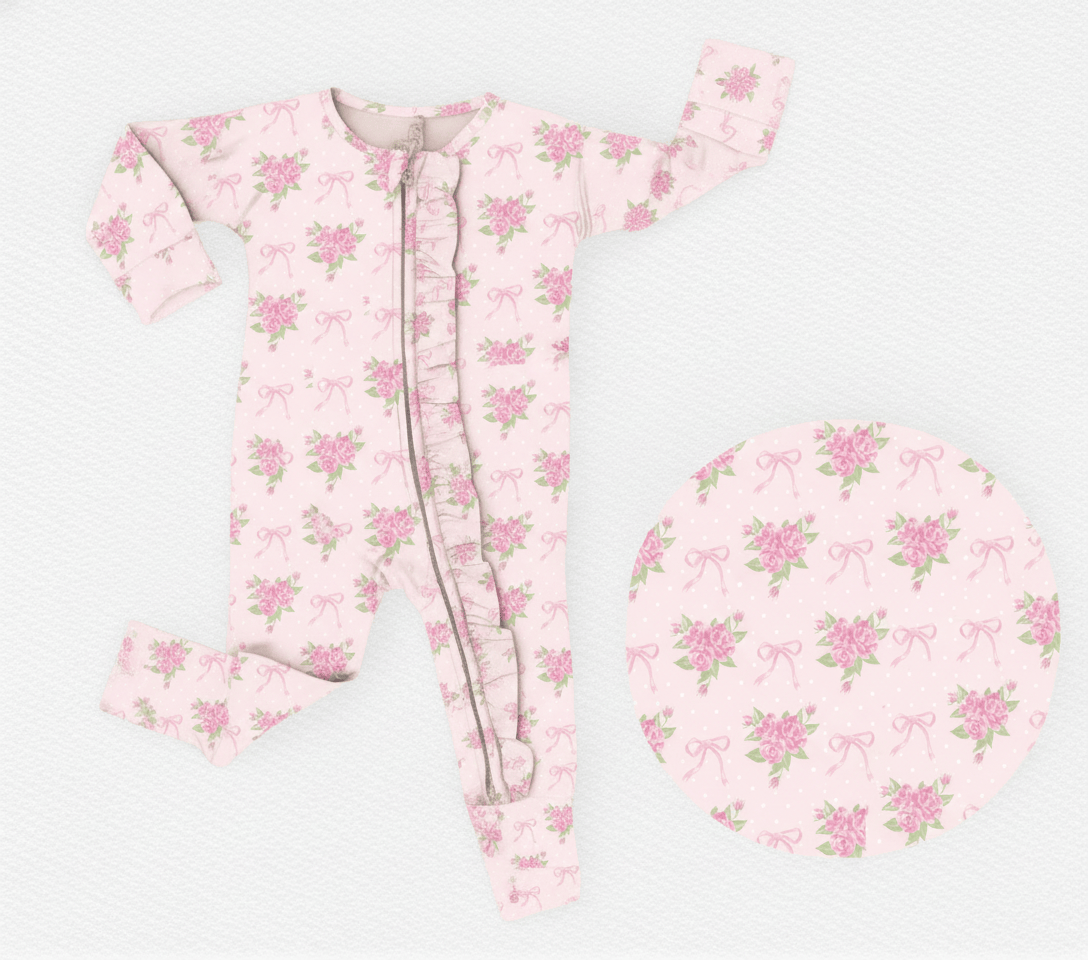 [Pre Order] Springtime Edit Rosewater Ribbons - Bamboo Ruffled Zippy Romper (EST SHIP MID MARCH)