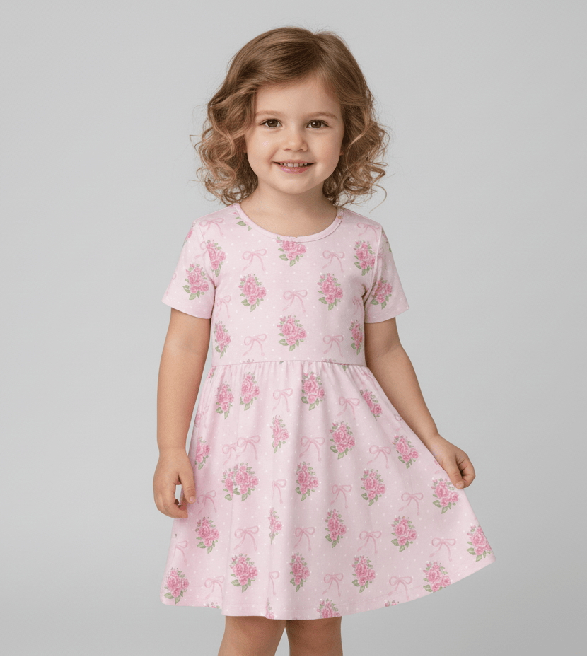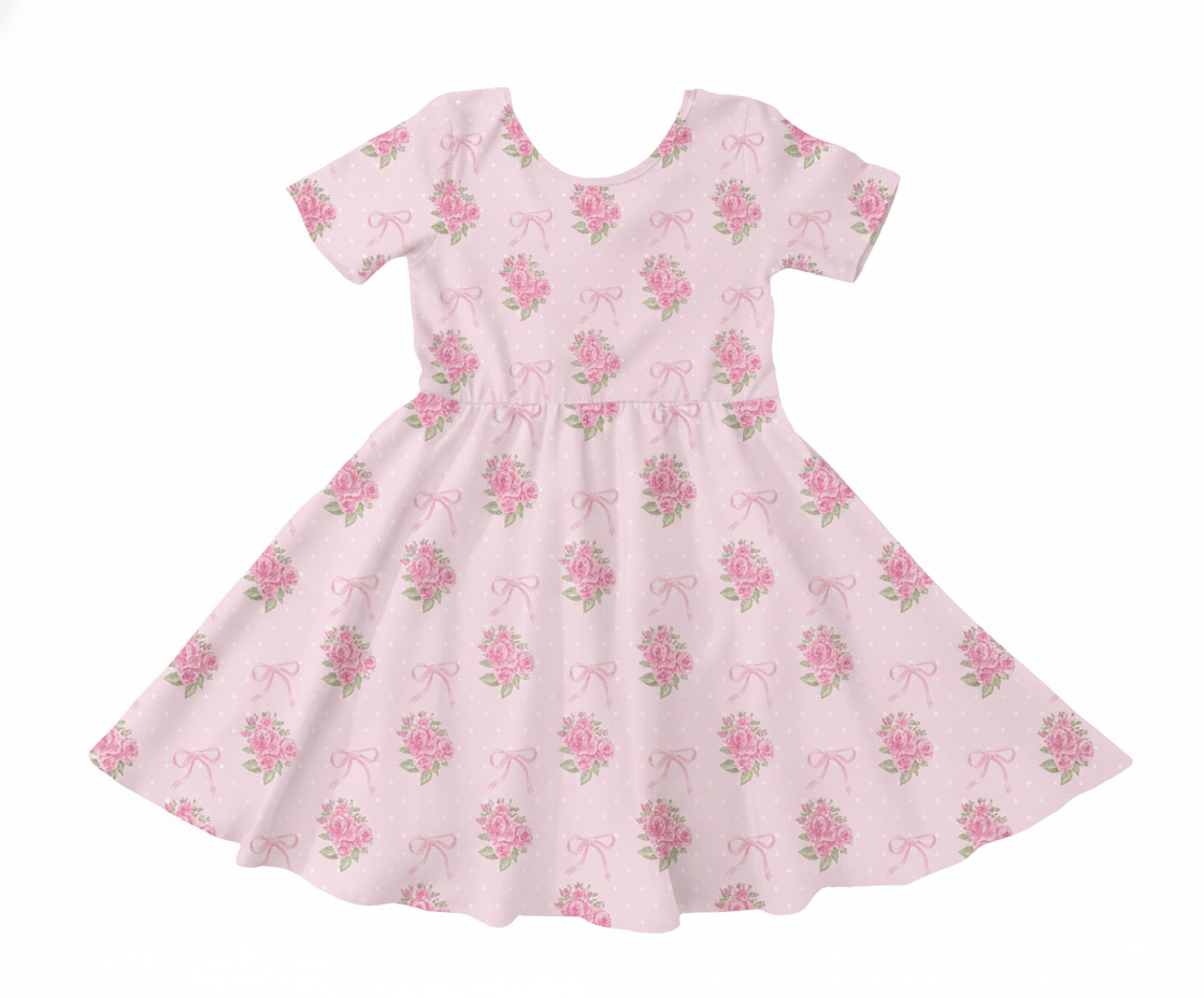 [Pre Order] Springtime Edit Rosewater Ribbons - Girls Short Sleeve Bamboo Twirl Dress (EST SHIP MID MARCH)