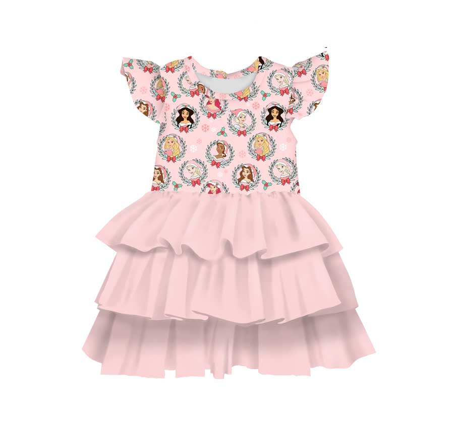 Magical Holidays Princess Wreaths - Girls Flutter Sleeve Bamboo Tiered Tulle Dress