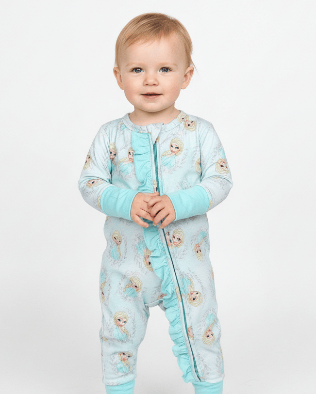 [Pre Order] Royal Quest Ice Princess - Bamboo Ruffled Zippy Romper with 3 way zipper (EST SHIP LATE MAY)