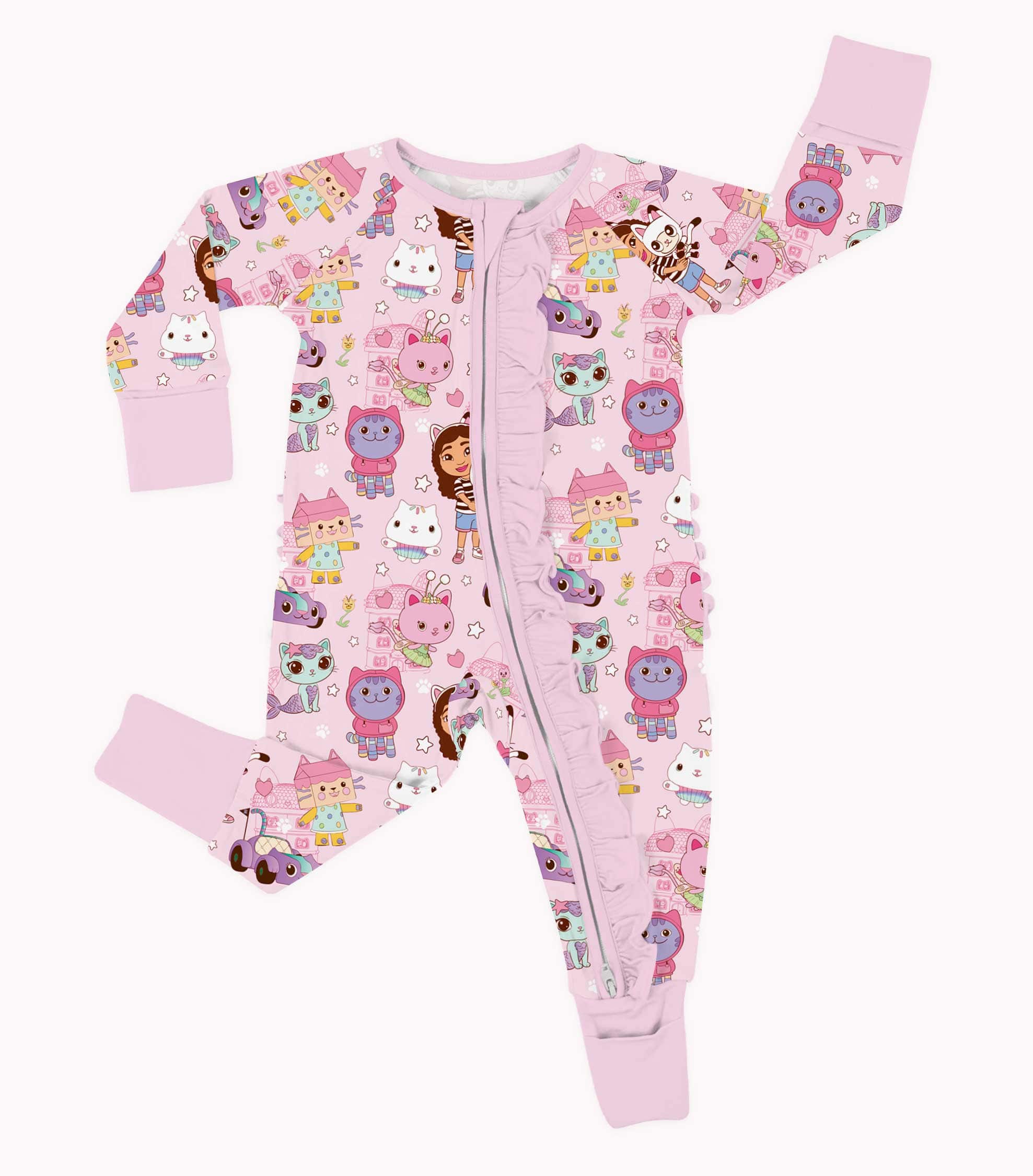 [Pre Order] All the Fun Things Kitty Club - Bamboo Ruffled Zippy Romper with 3 way zipper (EST SHIP LATE MAY)