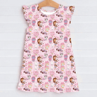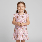 The overall style is sweet and timeless, blending a clean, simple shape with a whimsical all-over print for a fun, kid-friendly look. It’s the kind of dress that works perfectly for casual wear, special outings, or layering with cardigans and leggings.