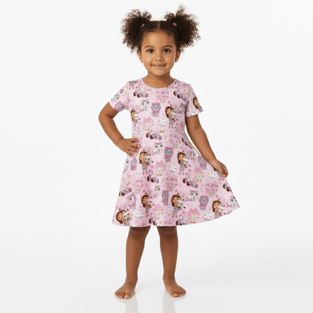 [Pre Order] All the Fun Things Kitty Club - Girls Short Sleeve Bamboo Twirl Dress (EST SHIP LATE MAY)