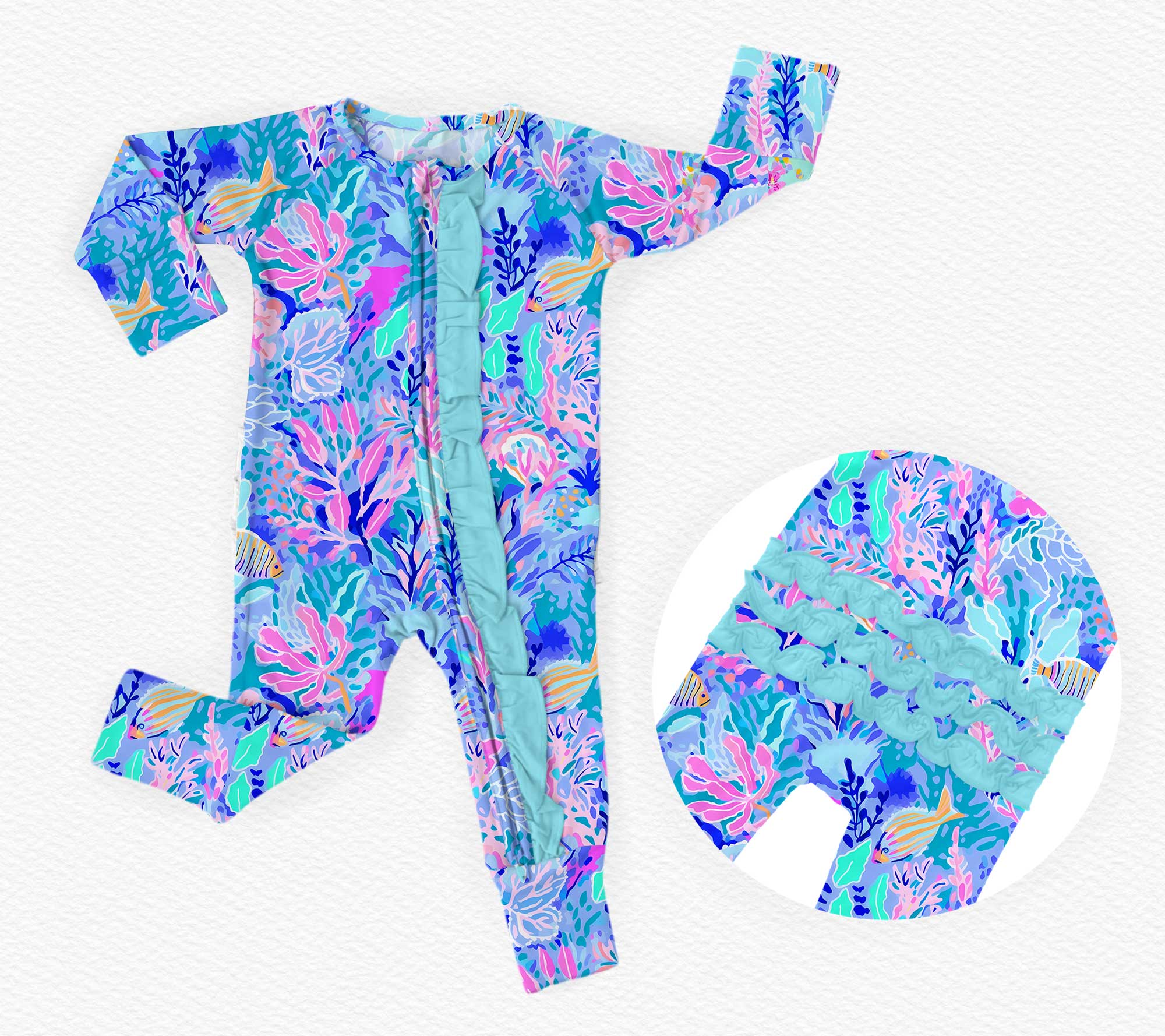 [Pre Order] Summer Vibes Preppy Paradise - Bamboo Ruffled Zippy Romper with 3 way zipper (EST SHIP EARLY JUNE)