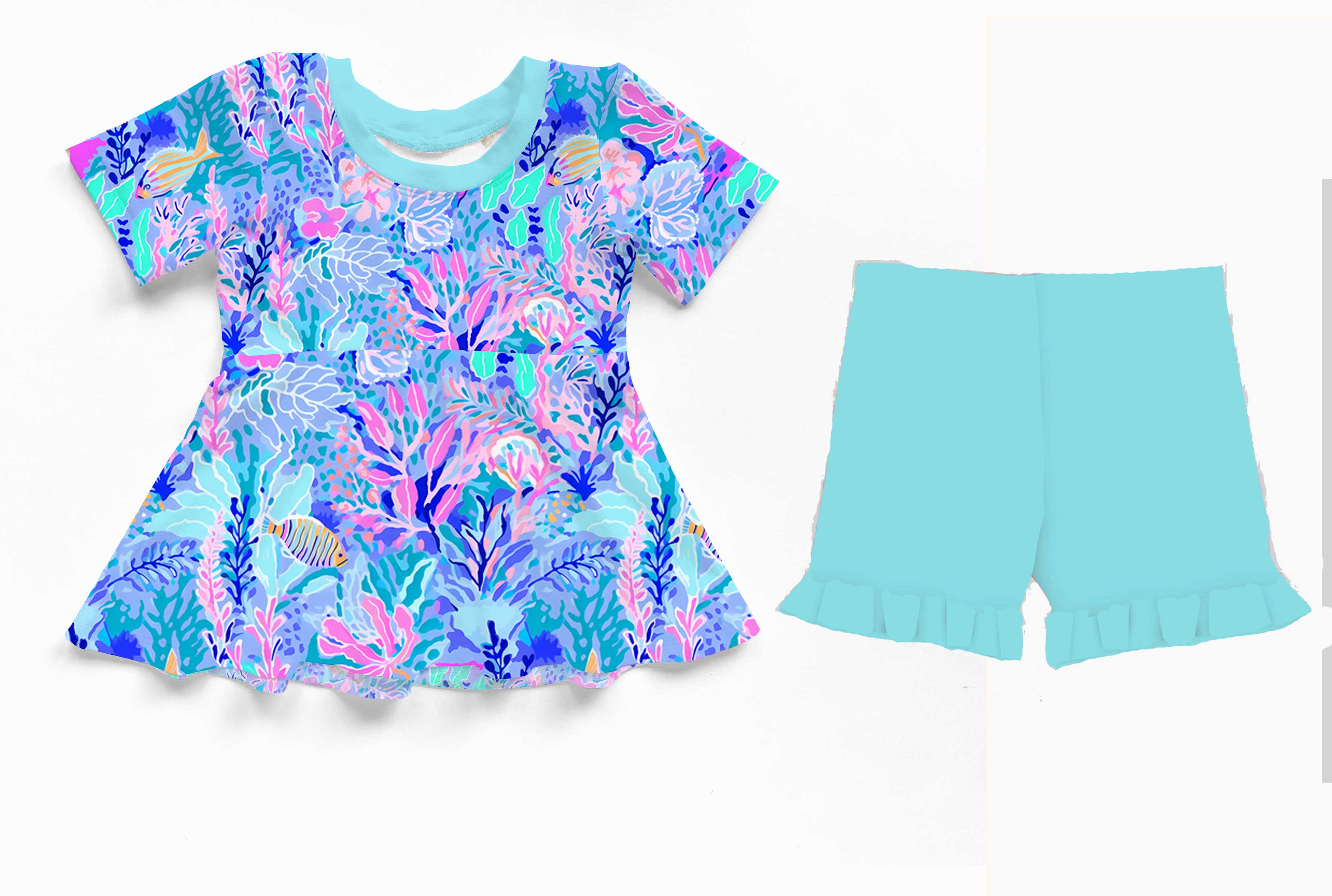 [Pre Order] Summer Vibes Preppy Paradise - Bamboo Short Sleeve & Shorts Peplum Set (EST SHIP EARLY JUNE)