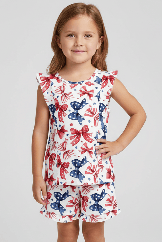 [Pre Order] Summer Vibes Star Spangled Sweetheart - Bamboo Flutter Sleeve & Shorts Lounge (EST SHIP EARLY JUNE)