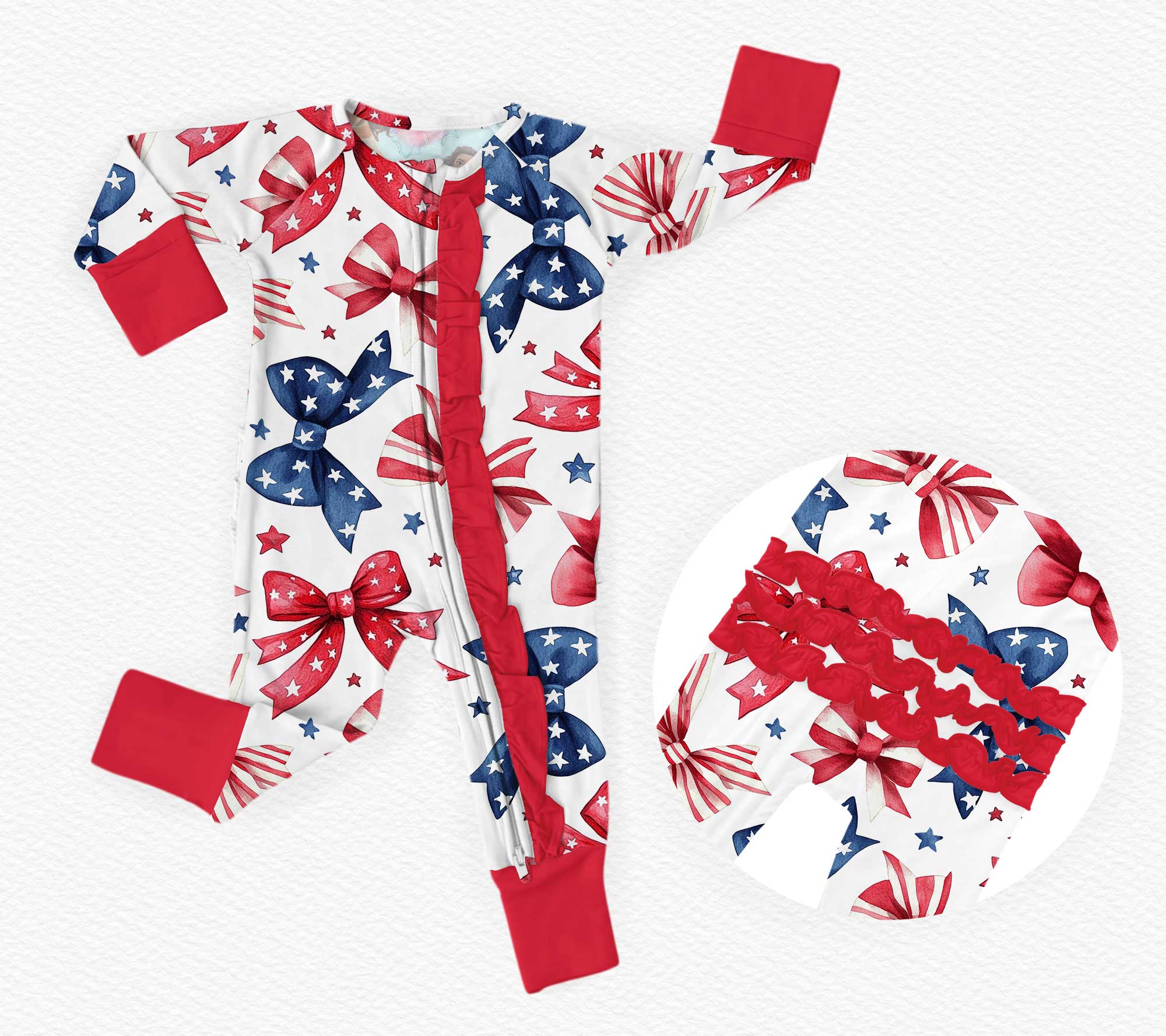 [Pre Order] Summer Vibes Star Spangled Sweetheart - Bamboo Ruffled Zippy Romper with 3 way zipper (EST SHIP EARLY JUNE)