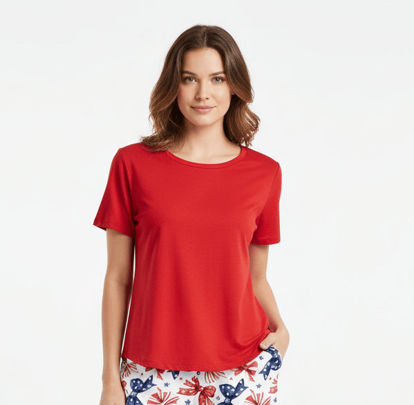 [Pre Order] Summer Vibes Star Spangled Sweetheart Red - Women's Solid Bamboo Scoop Neck Short Sleeve Top (EST SHIP EARLY JUNE)
