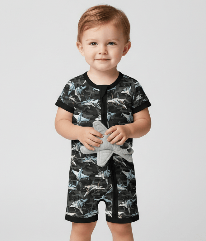 [Pre Order] Adventure Awaits Jet Force - Bamboo Shorty Romper (EST SHIP EARLY MAY)
