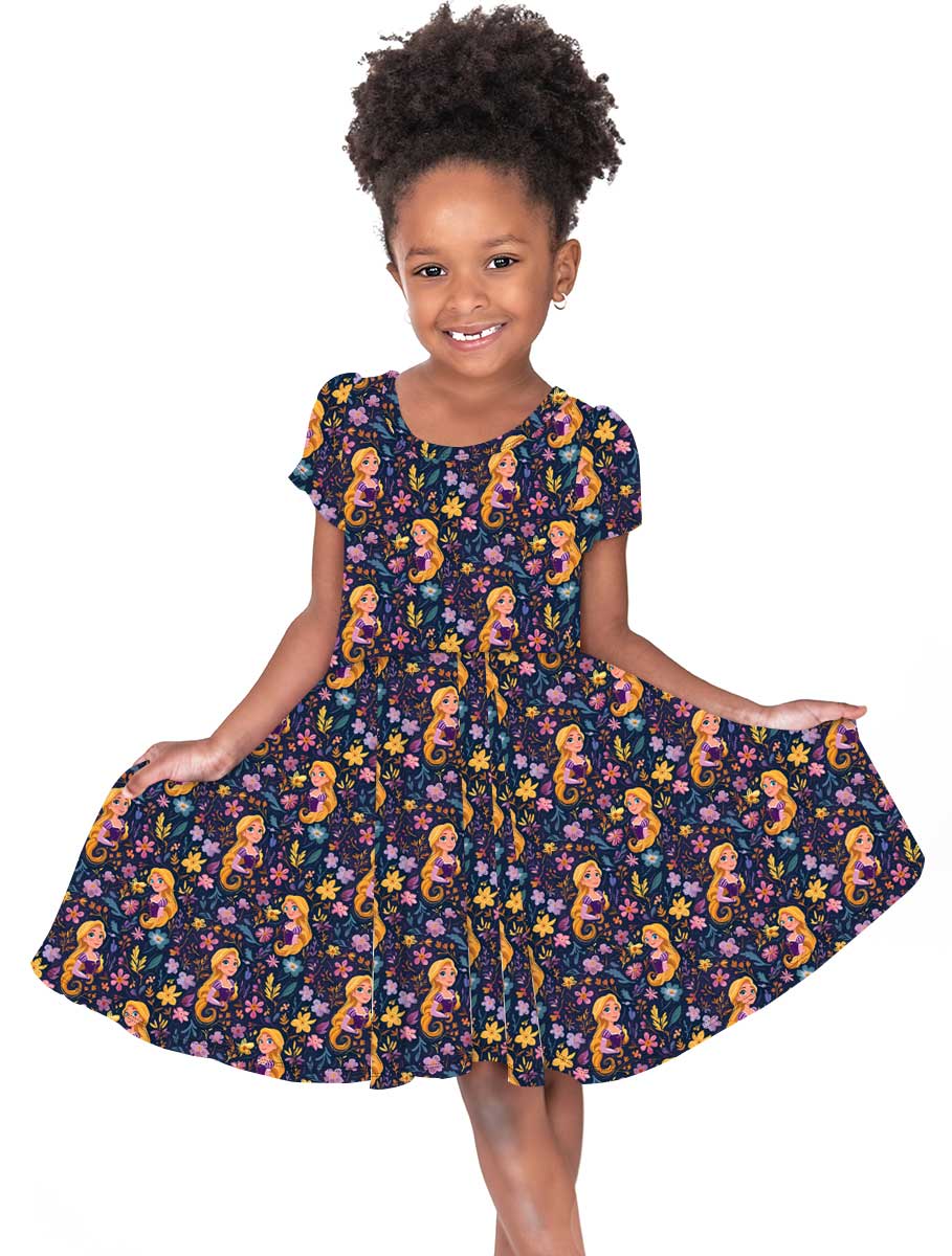 [Pre Order] Adventure Awaits Lost Princess - Girls Short Sleeve Bamboo Twirl Dress (EST SHIP EARLY MAY)