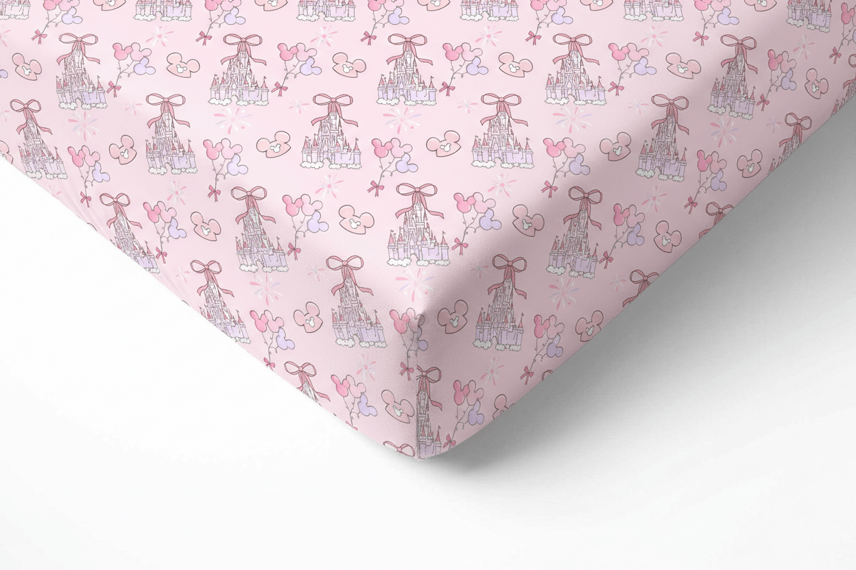 [Pre Order] Adventure Awaits Pink Palace - Bamboo Fitted Crib Sheets (EST SHIP EARLY MAY)