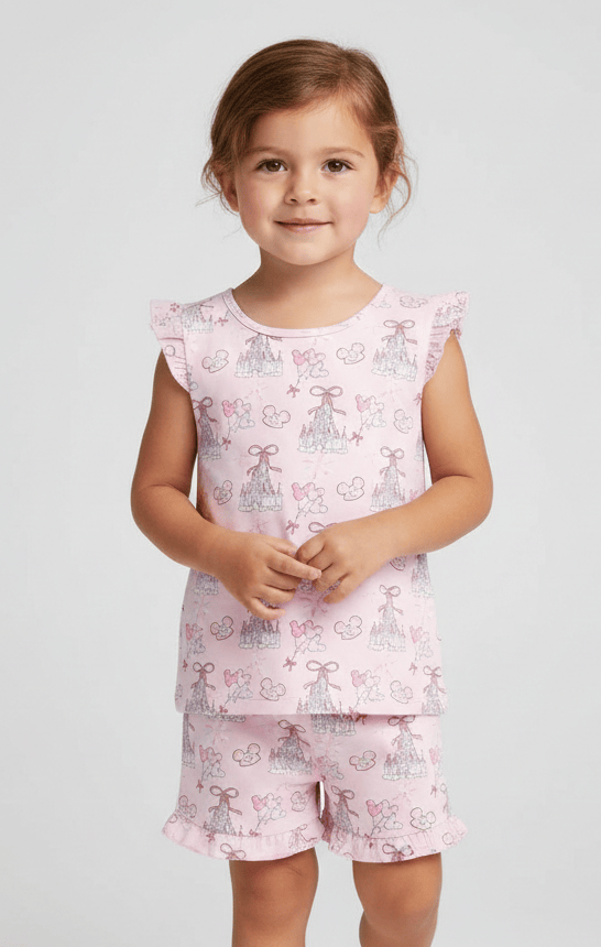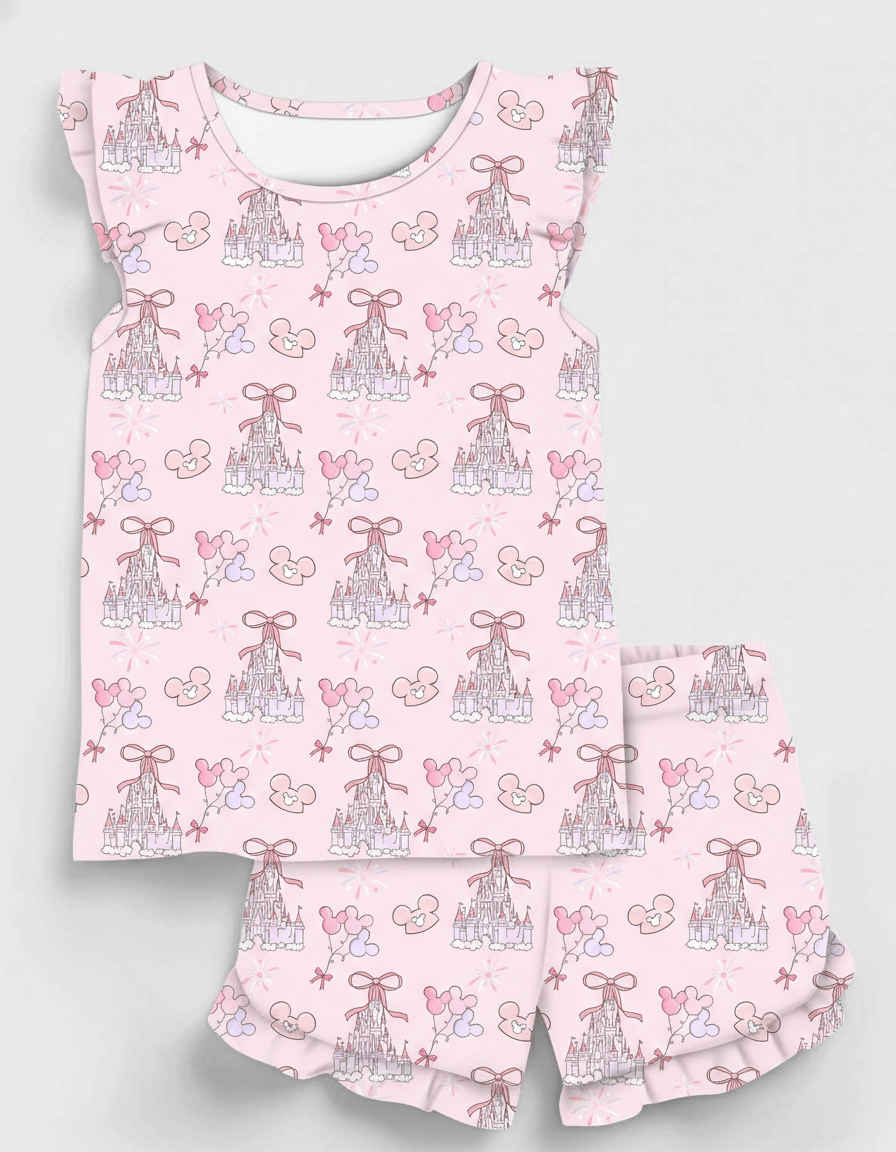 [Pre Order] Adventure Awaits Pink Palace - Bamboo Flutter Sleeve & Shorts Lounge (EST SHIP EARLY MAY)