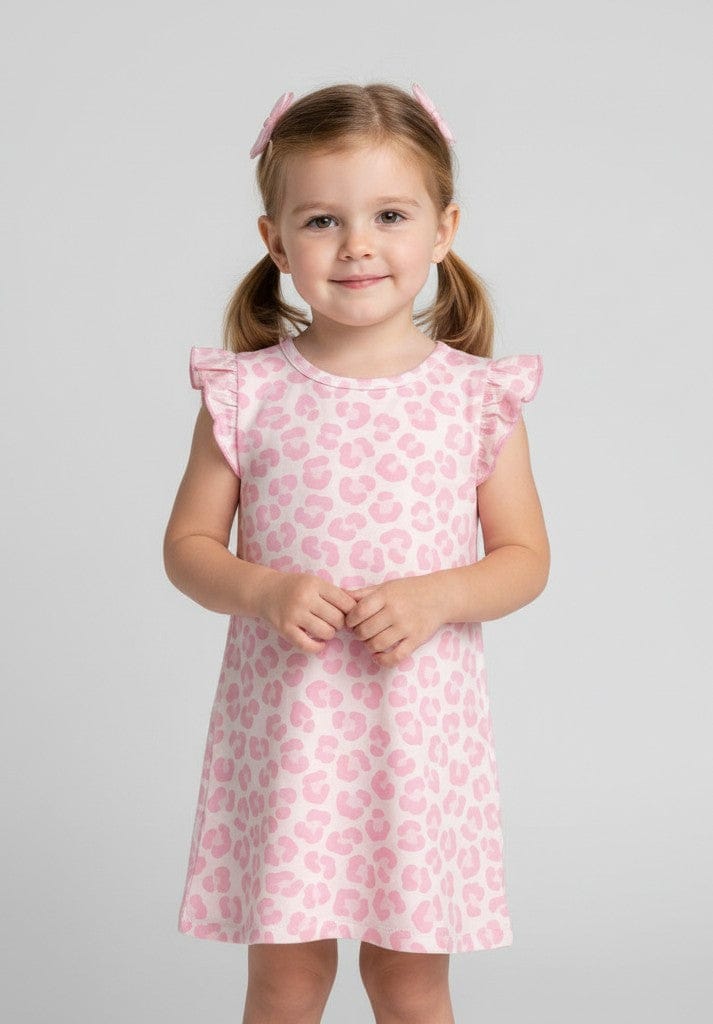 The overall style is sweet and timeless, blending a clean, simple shape with a whimsical all-over print for a fun, kid-friendly look. It’s the kind of dress that works perfectly for casual wear, special outings, or layering with cardigans and leggings.
