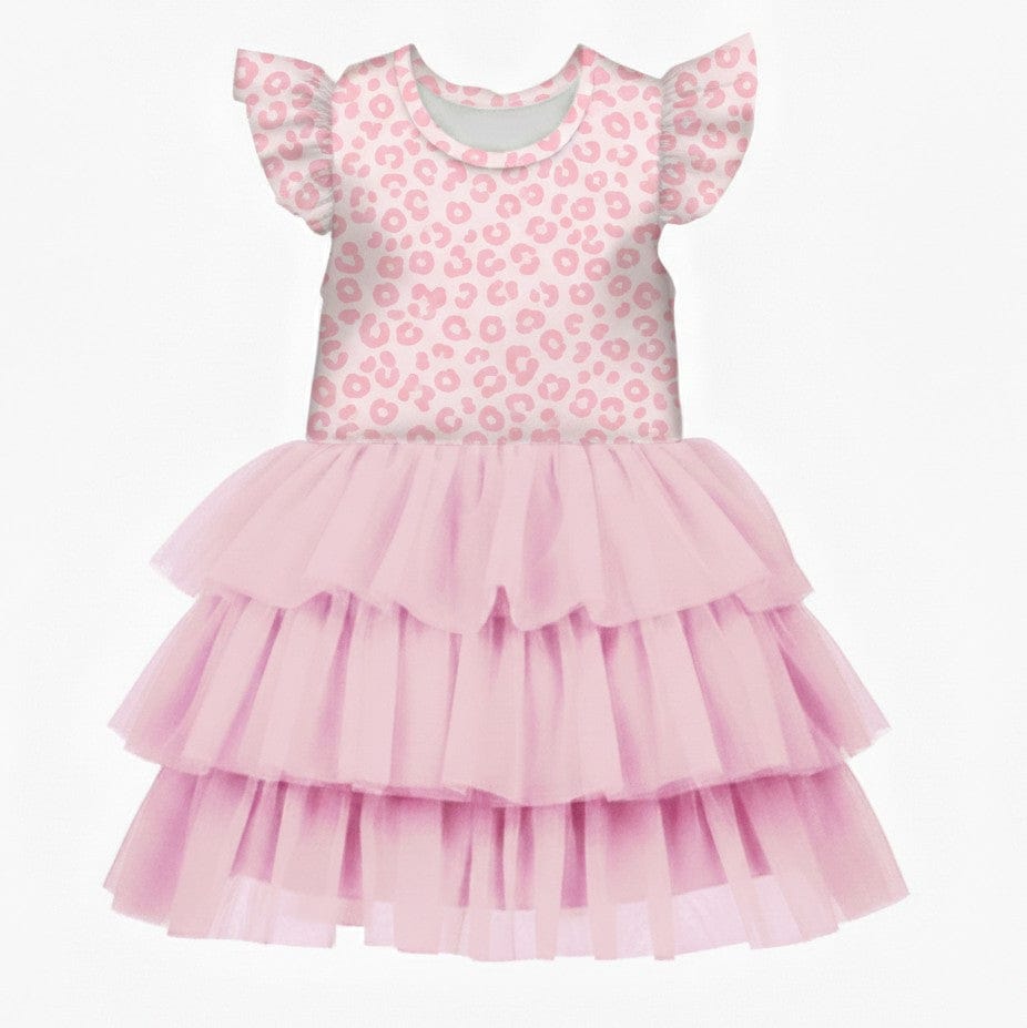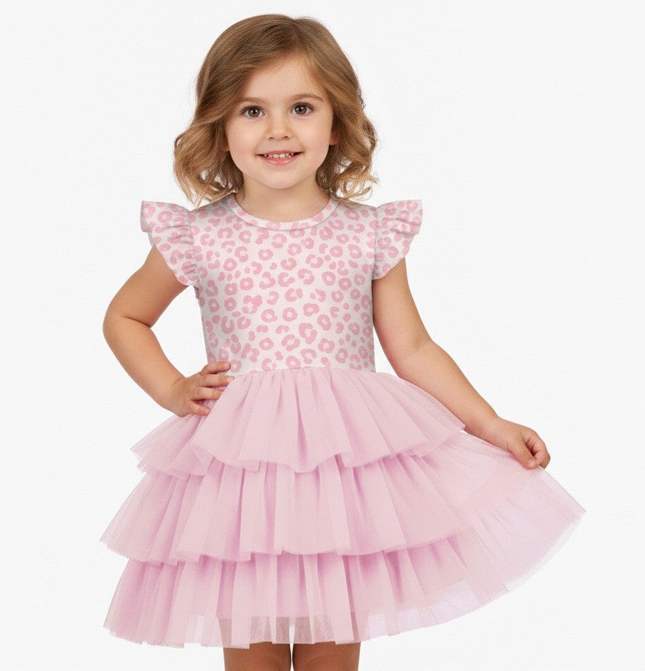[Pre Order] Adventure Awaits Sweet Spots - Girls Flutter Sleeve Bamboo Tiered Tulle Dress (EST SHIP EARLY MAY)