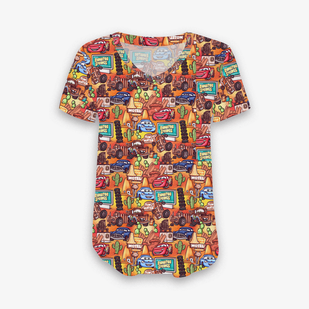 Castles & Cartoons Radiator Springs - Women's Bamboo V Neck Short Sleeve Top