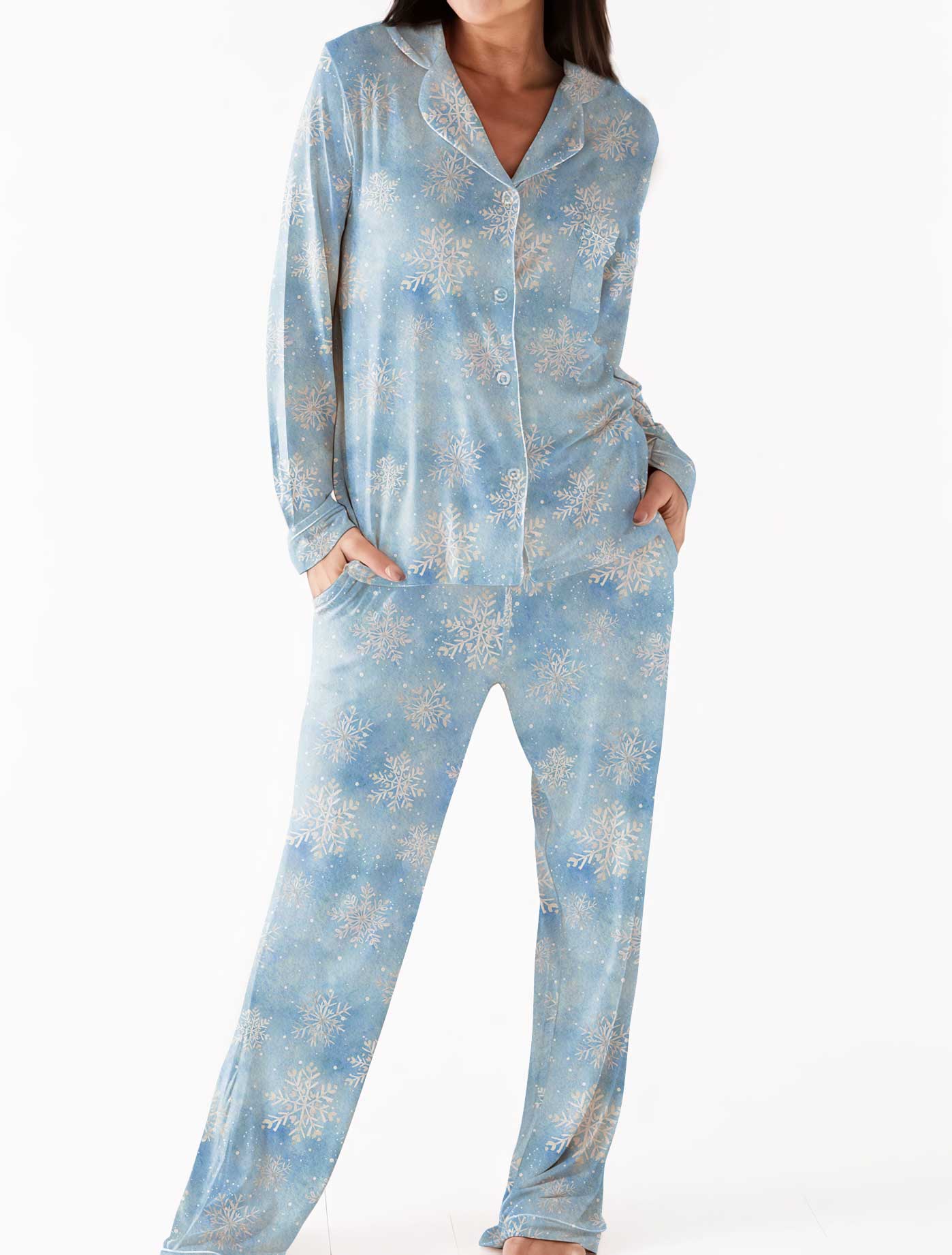 Feelin Festive Frosted Flurries - Women's Bamboo Long Sleeve Lounge Set