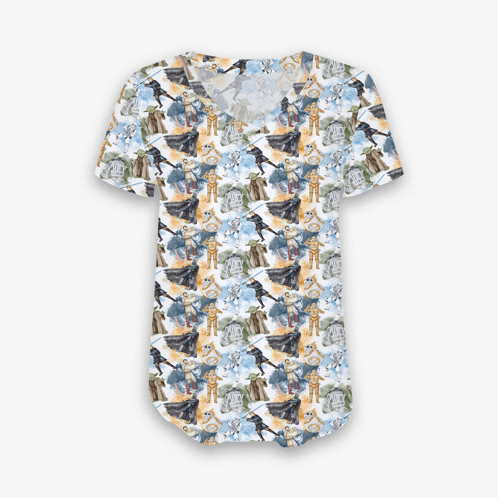 Castles & Cartoons Galaxy Far Away - Women's Bamboo V Neck Short Sleeve Top