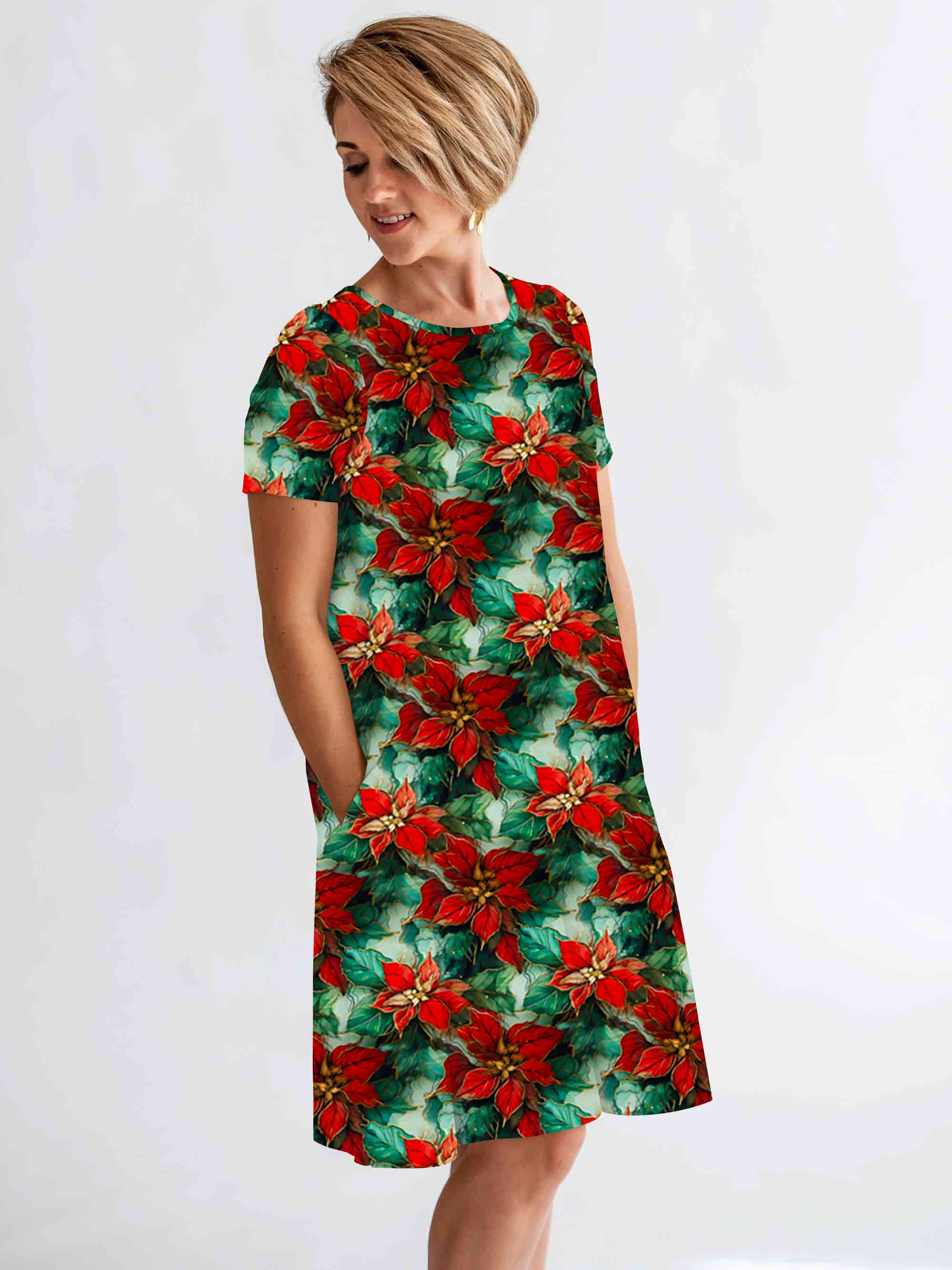 Feelin Festive Golden Poinsettia - Women's Short Sleeve Cloud Soft Charley Dress