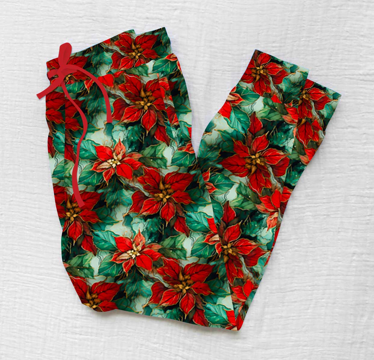 Feelin Festive Golden Poinsettia - Women's Bamboo Lounge Joggers