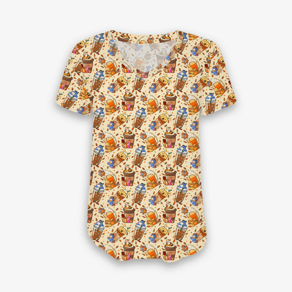 Fallin for Fall Pooh Brew - Women's Bamboo V Neck Short Sleeve Top