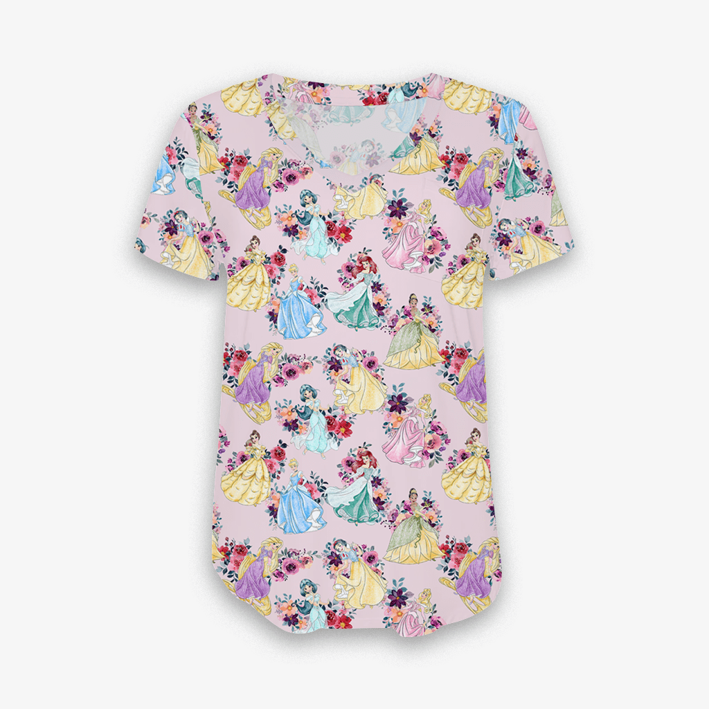 Castles & Cartoons Princess Blooms - Women's Bamboo V Neck Short Sleeve Top