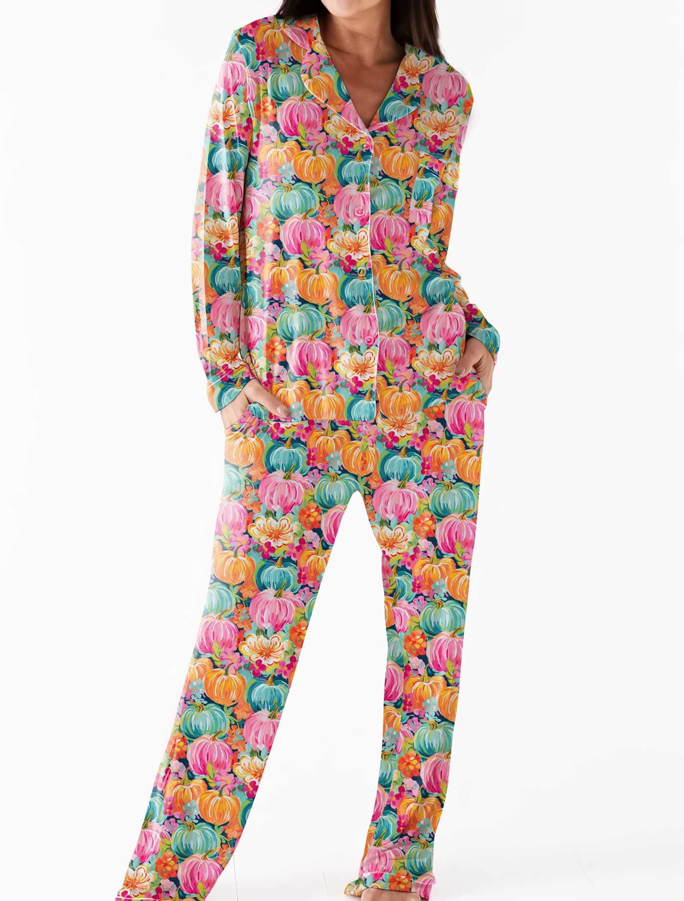 Fallin for Fall Preppy Pumpkins - Women's Bamboo Long Sleeve Lounge Set
