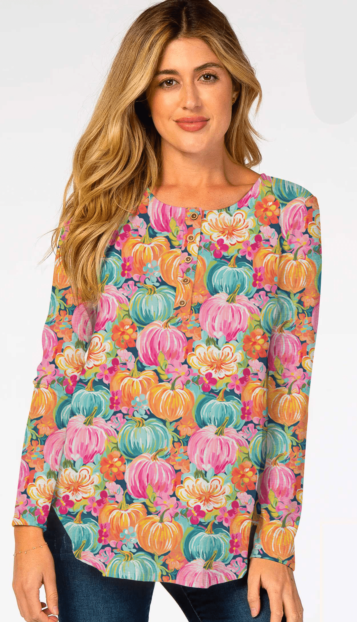 Fallin for Fall Preppy Pumpkins - Women's Bamboo Long Sleeve Snap Top