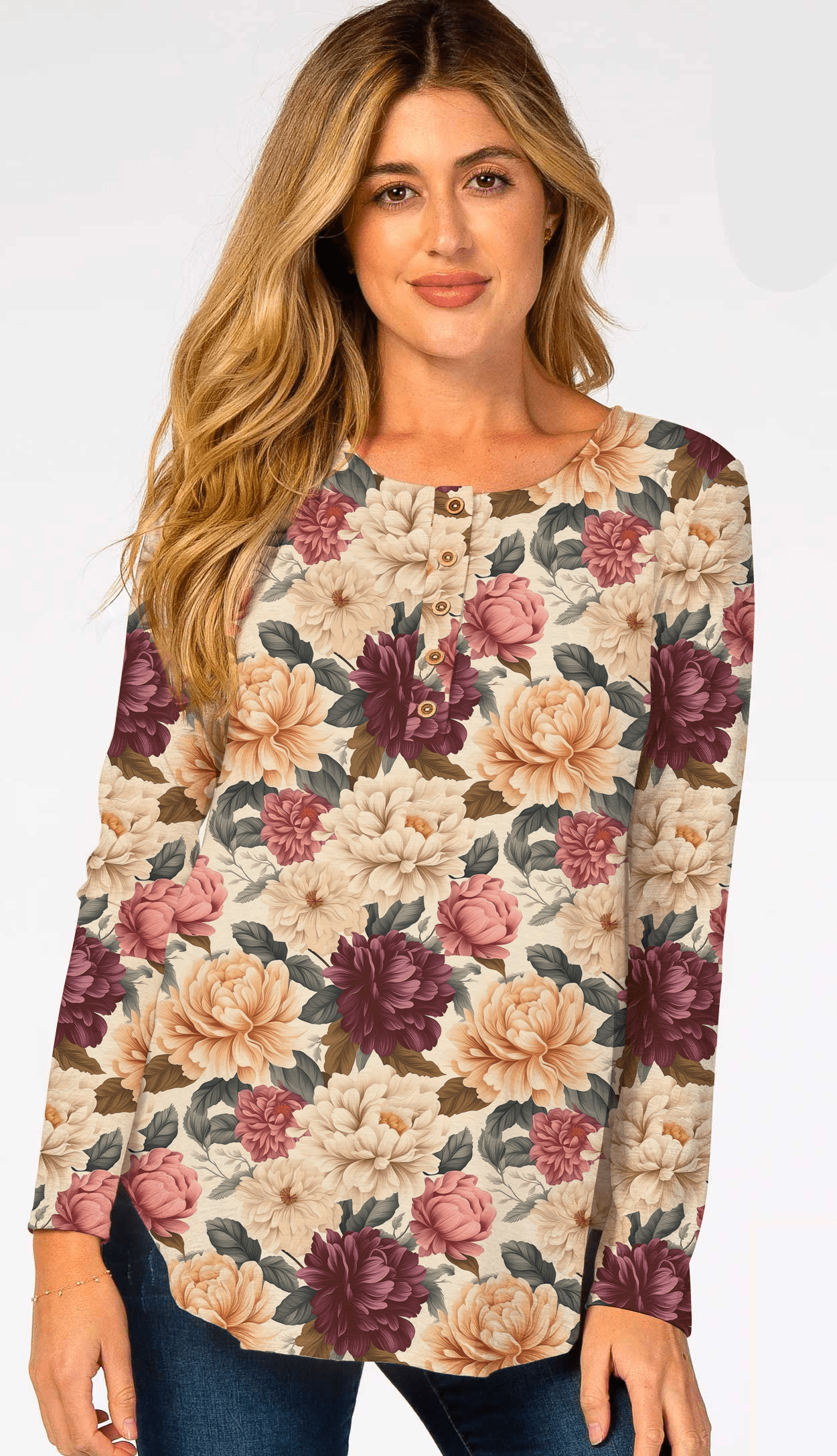 Fallin for Fall Autumn Floral - Women's Bamboo Long Sleeve Snap Top