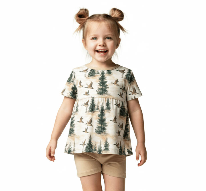 [Pre Order] All the Fun Things Northwoods Flight - Girls Bamboo Short Sleeve & Shorts Peplum Set (EST SHIP LATE MAY)