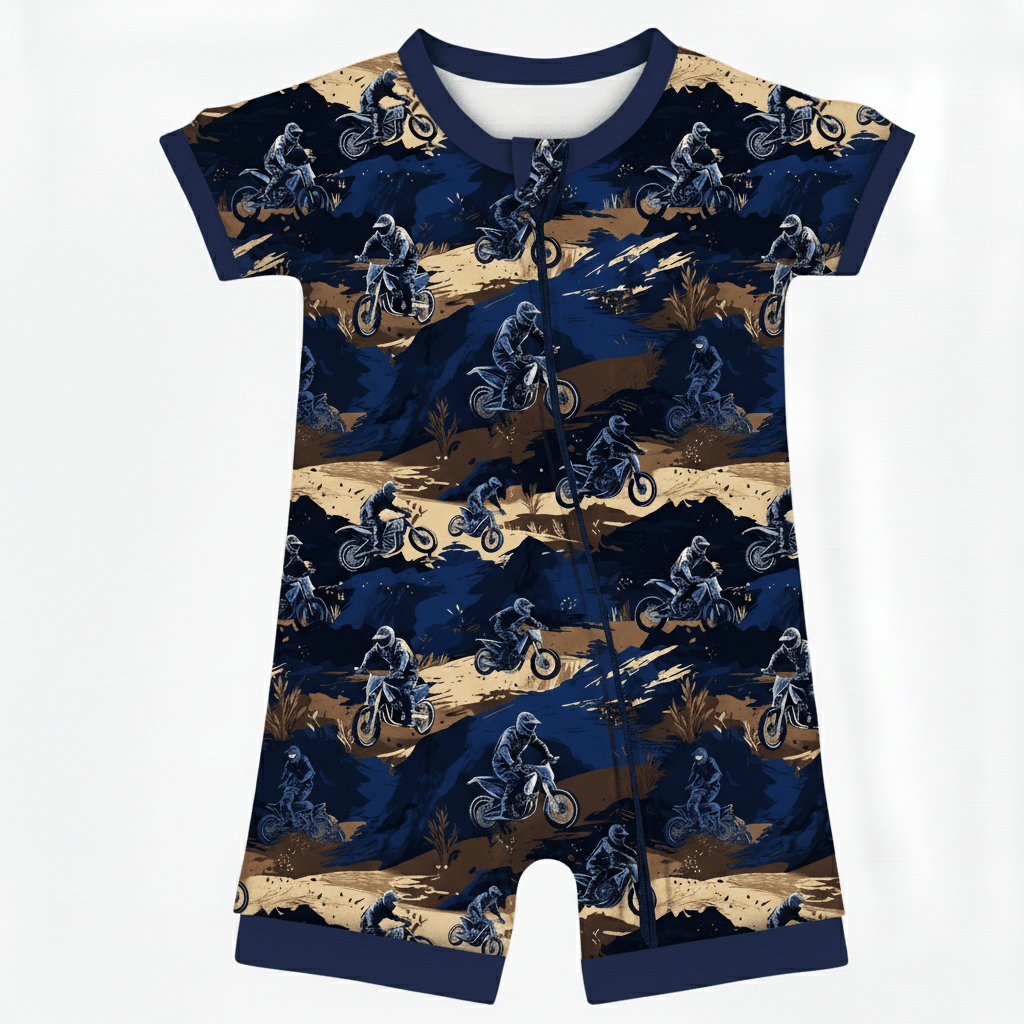 [Pre Order] All the Fun Things Off Road Rebels - Bamboo Shorty Romper (EST SHIP LATE MAY)