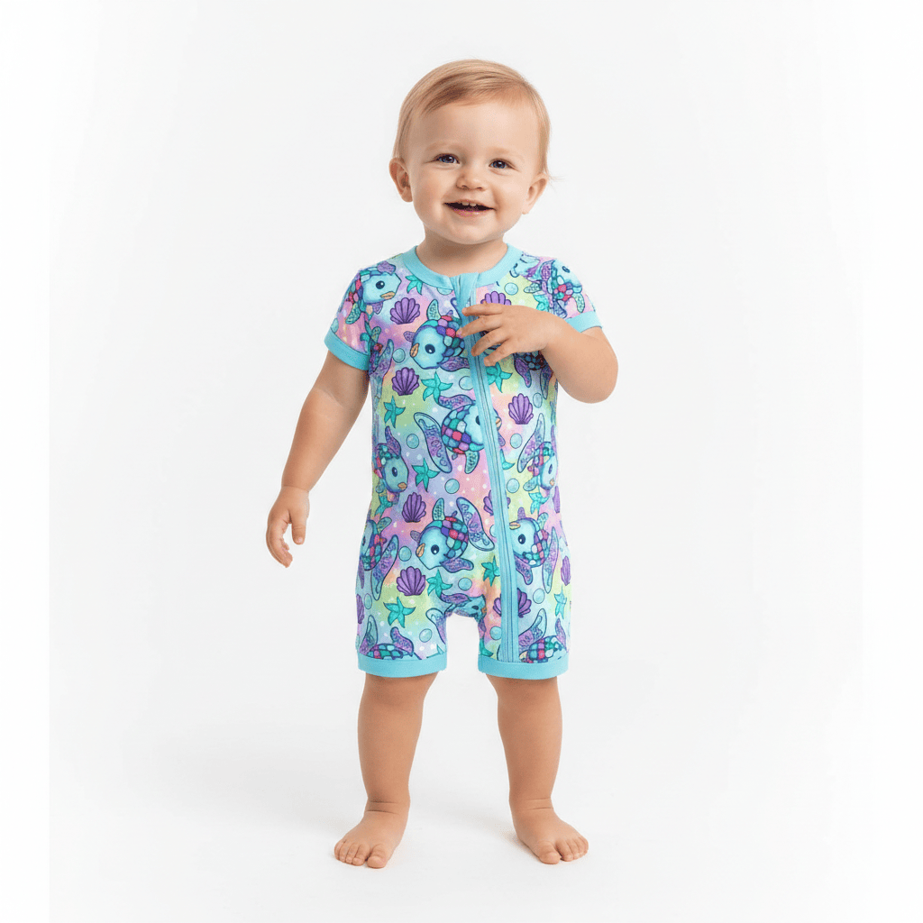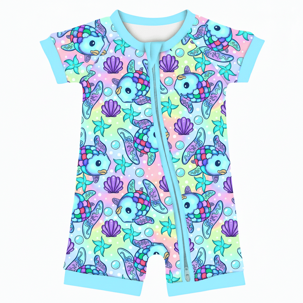 [Pre Order] All the Fun Things Rainbow Reef - Bamboo Shorty Romper (EST SHIP LATE MAY)
