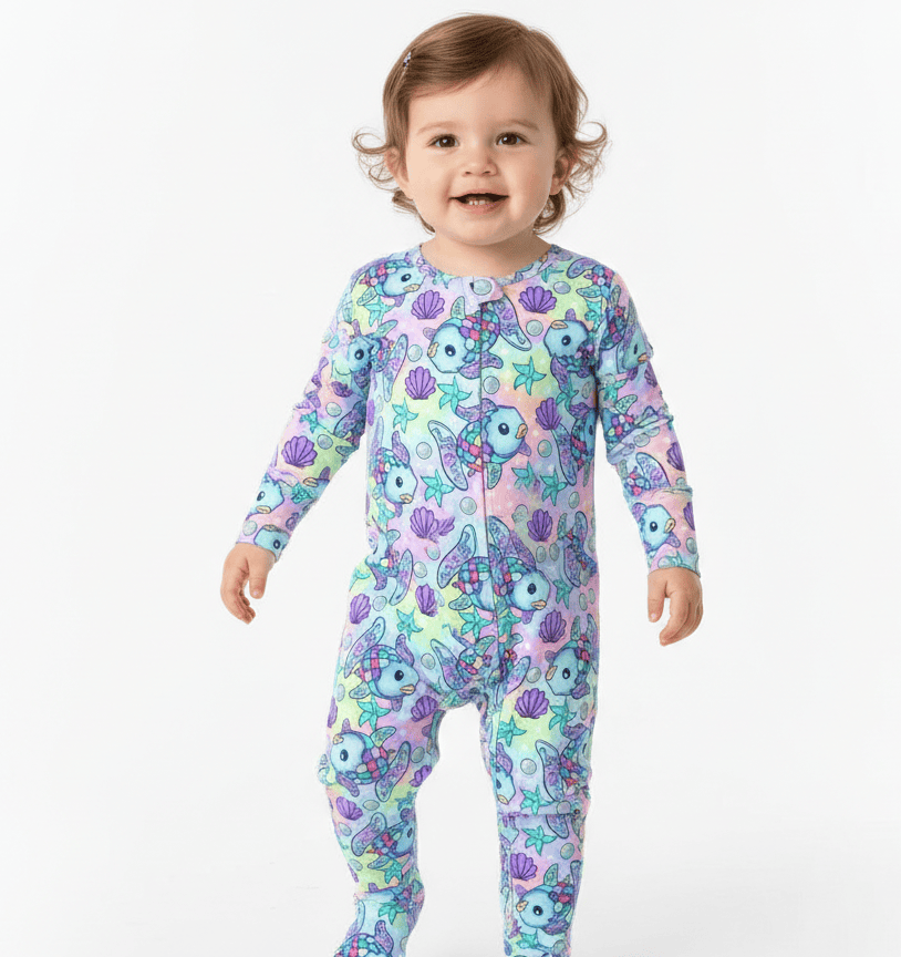 Our bamboo fabric is THE softest AND most durable for those busy little kids! Not only plush, but machine washable, shrink resistant, does not pill, and yet, it feels so buttery soft! We've added thoughtful touches to our zipper pajamas like fold-over feet & mittens, a 3-way zipper, and made them tag-less so they won’t irritate your baby or toddler’s skin.