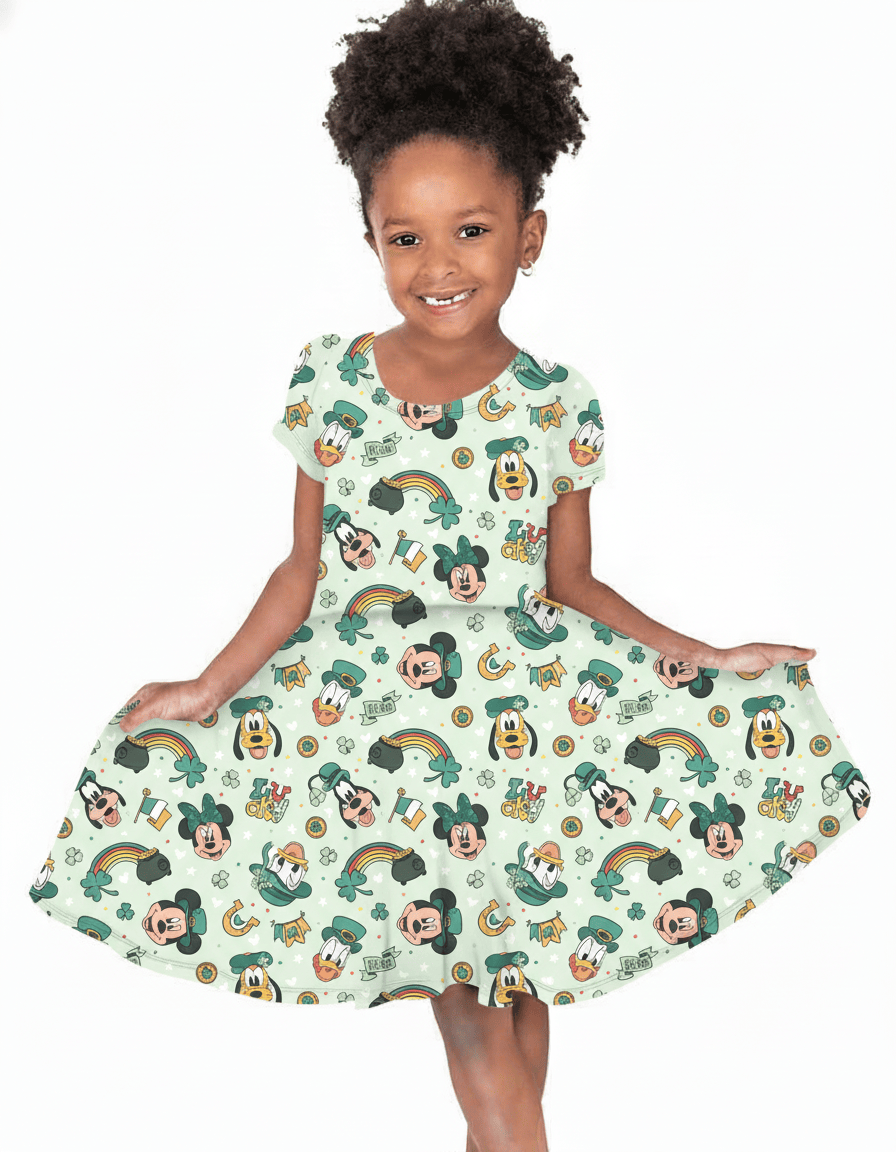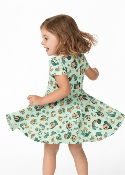 [Pre Order] Lucky You Charm Squad - Girls Short Sleeve Bamboo Twirl Dress (EST SHIP MID FEB)
