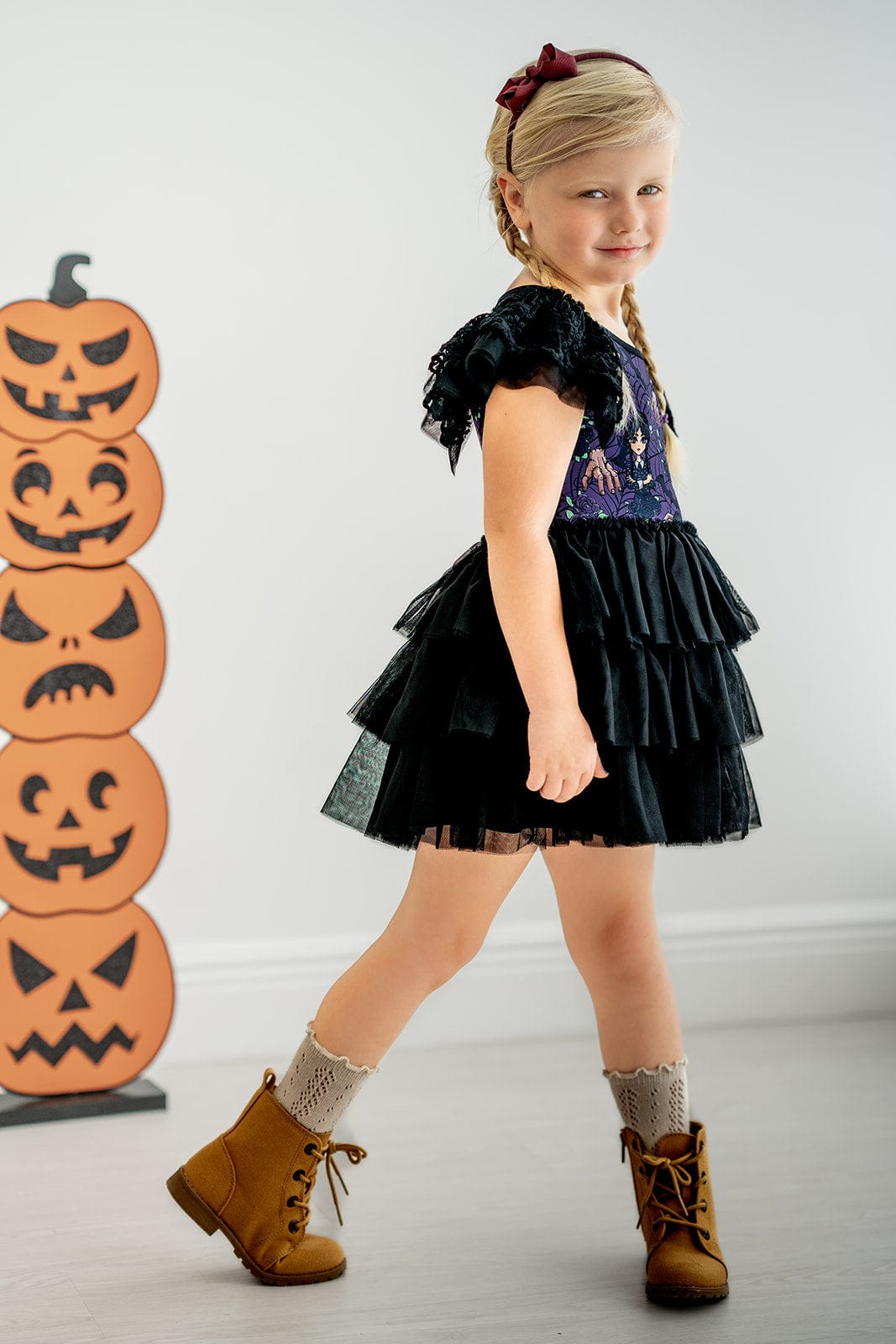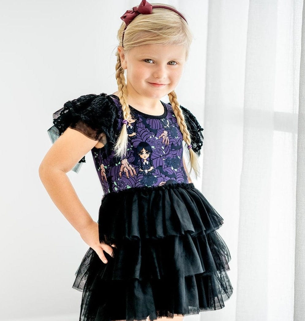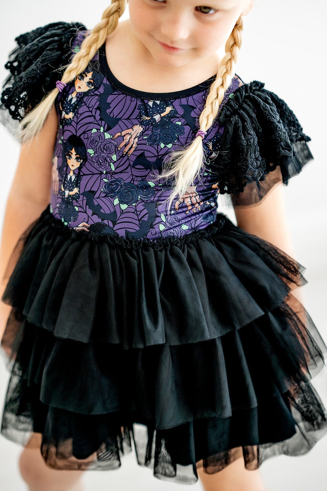 Very Scary Wednesday - Girls Lace Sleeve Performance Material Tulle Dress