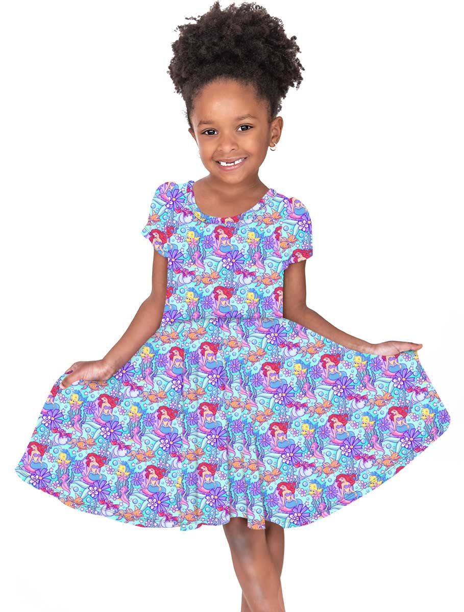 Whimsy & Wonder Part of your World - Girls Short Sleeve Bamboo Twirl Dress