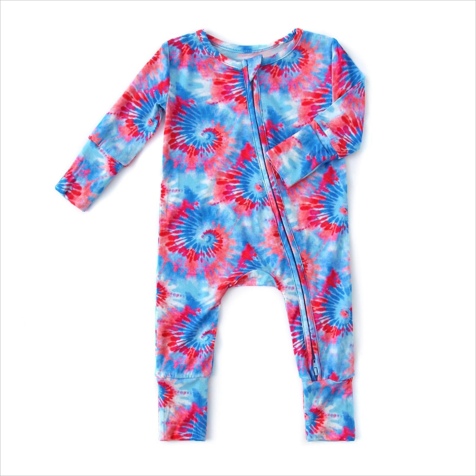 PoshTOT Tie-Dye Bamboo Baby Convertible Zippy Romper