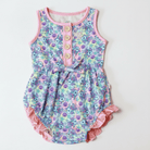 Adorable and stylish, this romper features a ruffled bum up to size 3, a tank style top, and an elastic waist for ultimate comfort. Plus, its lightweight material keeps your little one cool all day long.