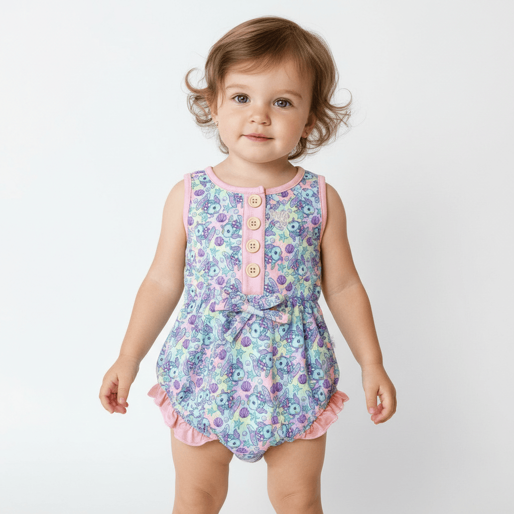 [Pre Sale] All the Fun Things Rainbow Reef - Girls Bamboo Short Romper (EST SHIP LATE MAY)