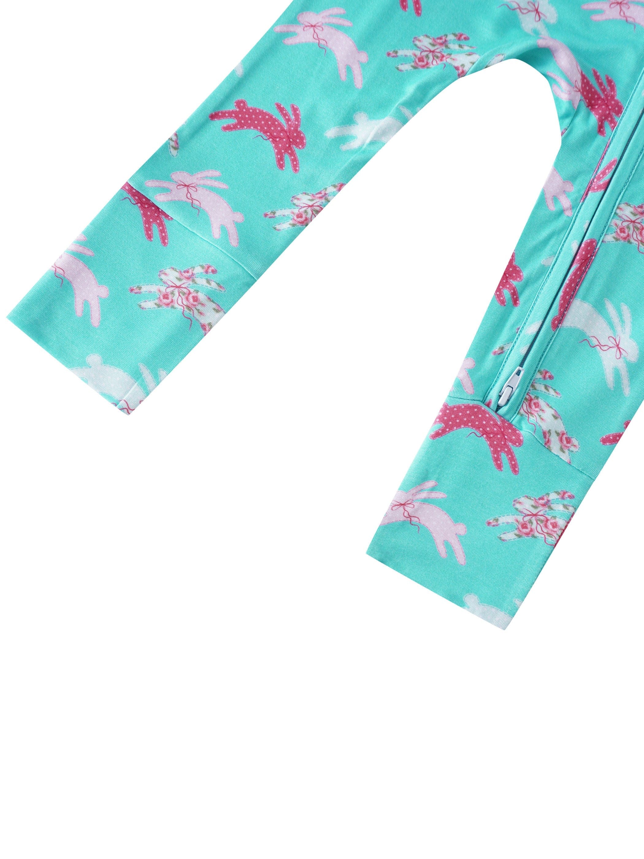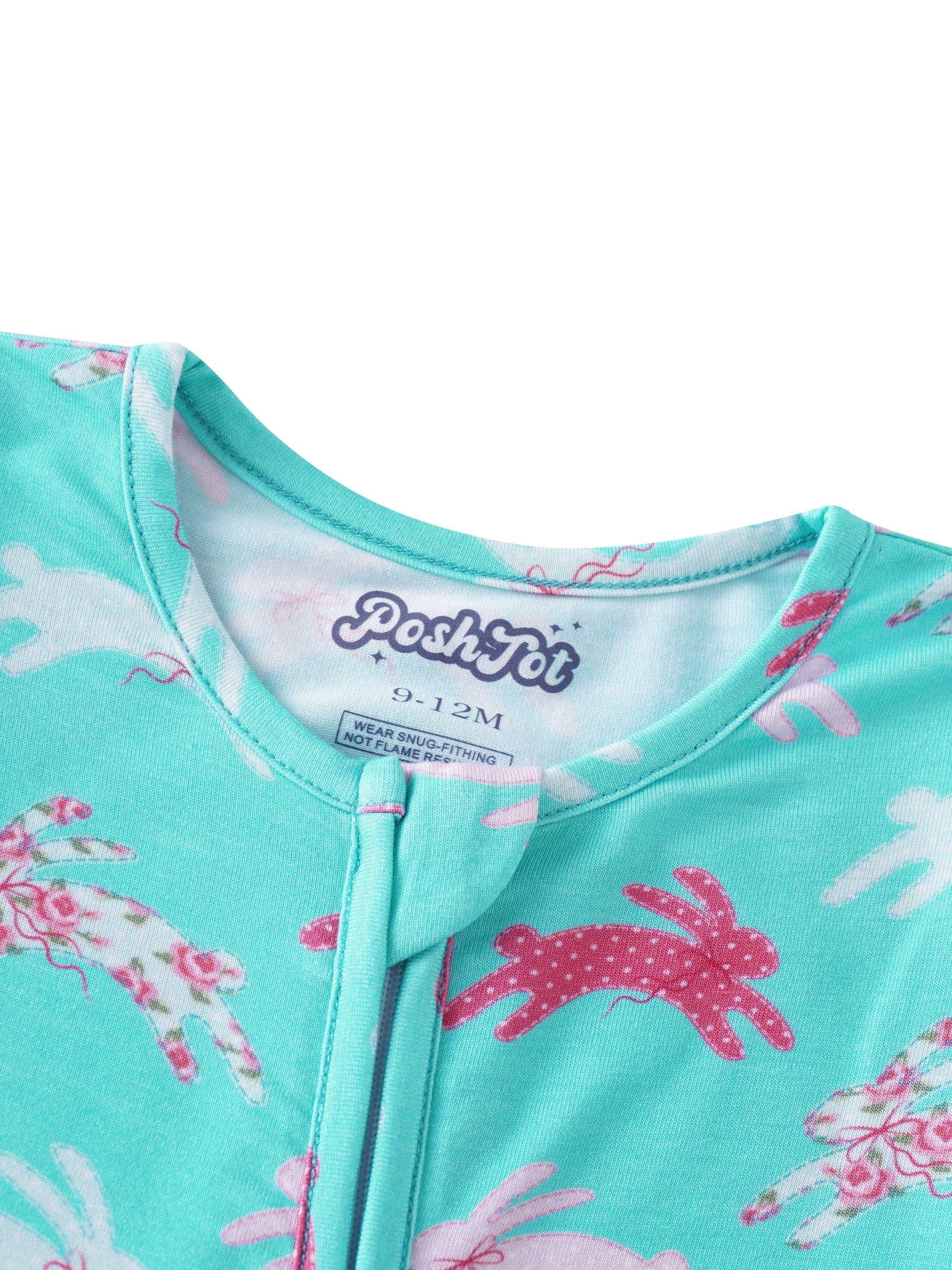 PoshTOT Little Flower Rabbit Bamboo Baby Convertible Zippy Romper