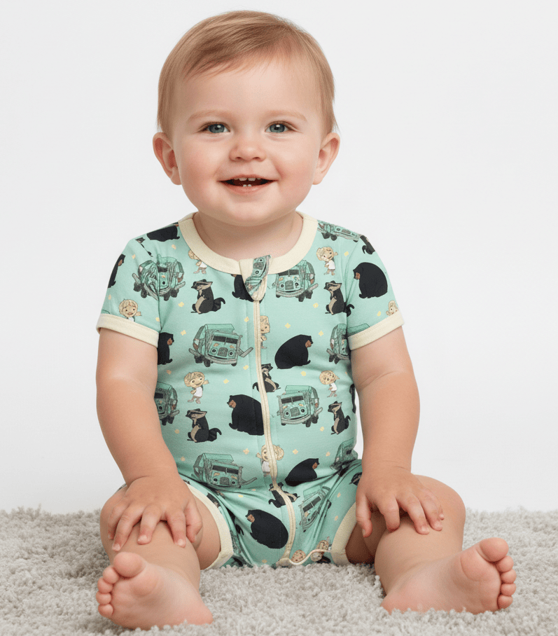 [Pre Sale] Charlie Play Truck & Friends - Bamboo Lyocell Shorty Romper (EST SHIP LATE MARCH)