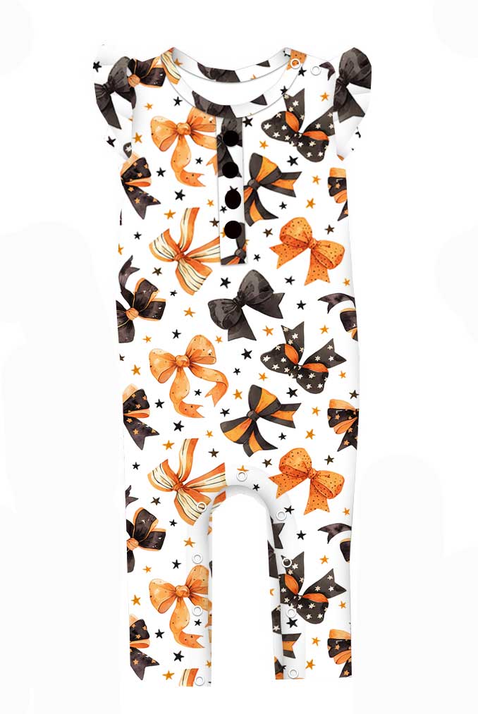 Not So Scary Boo's & Bows - Girls Bamboo Flutter Sleeve Ruffled Romper