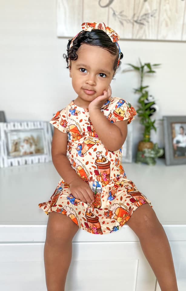 Fallin for Fall Pooh Brew - Bamboo Shorty Romper