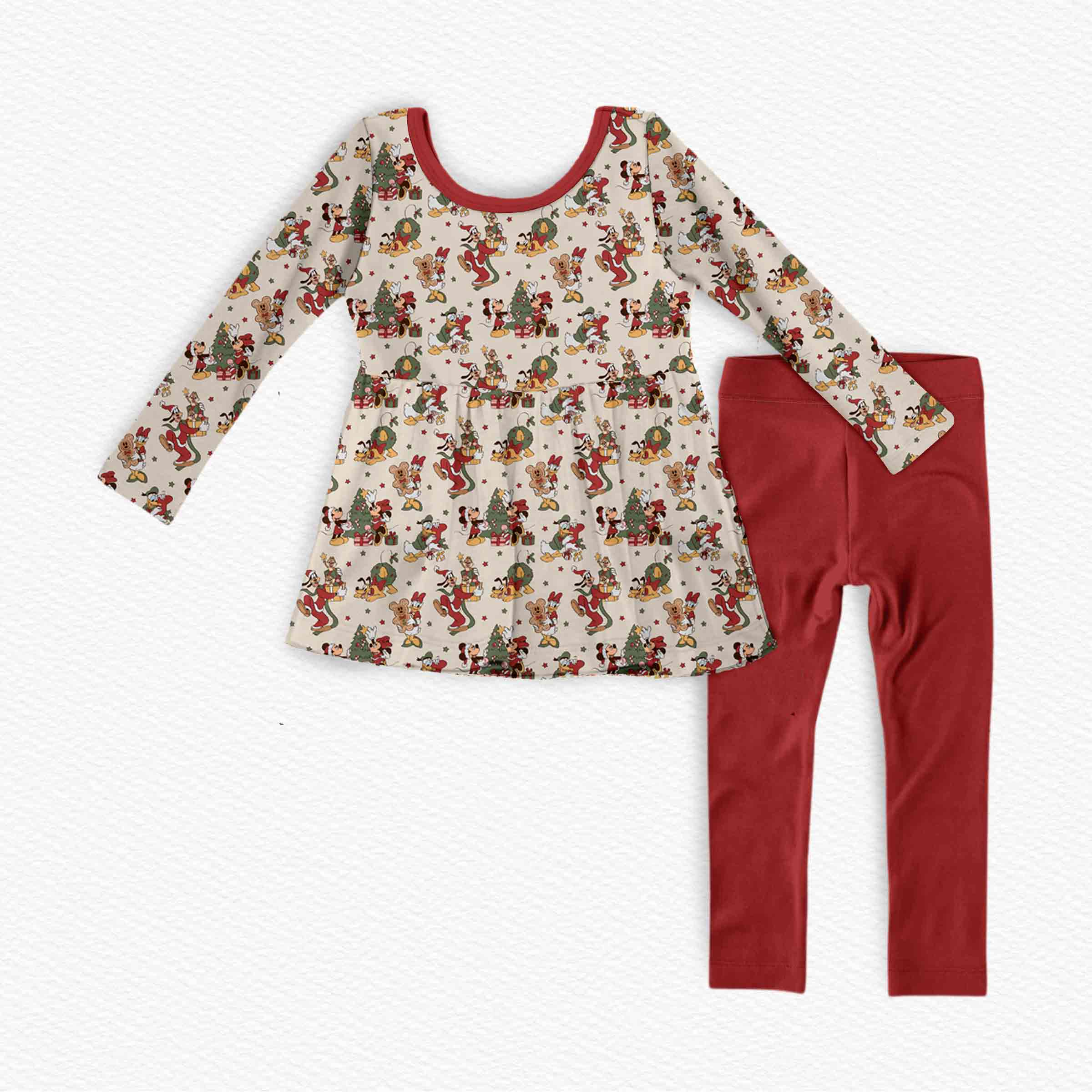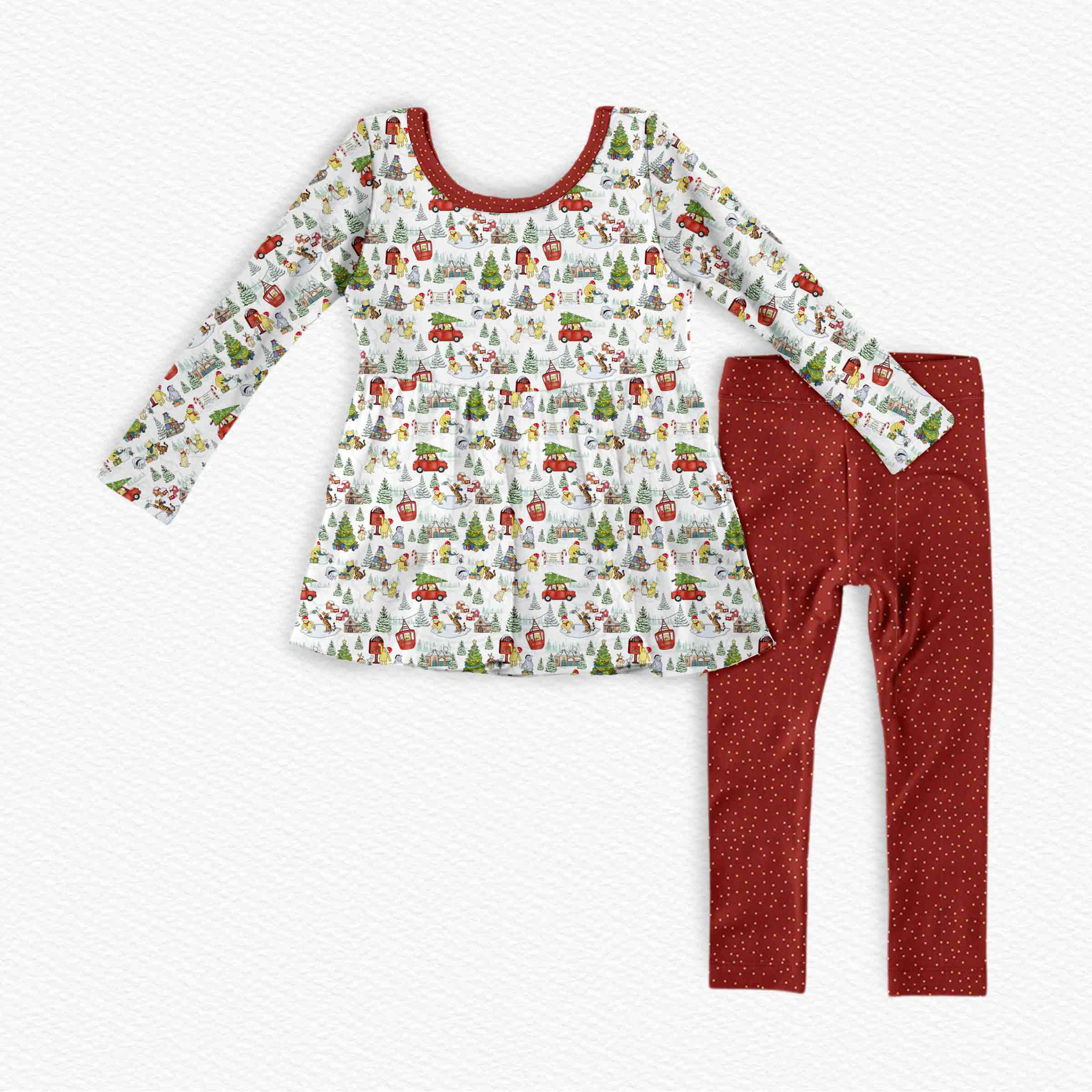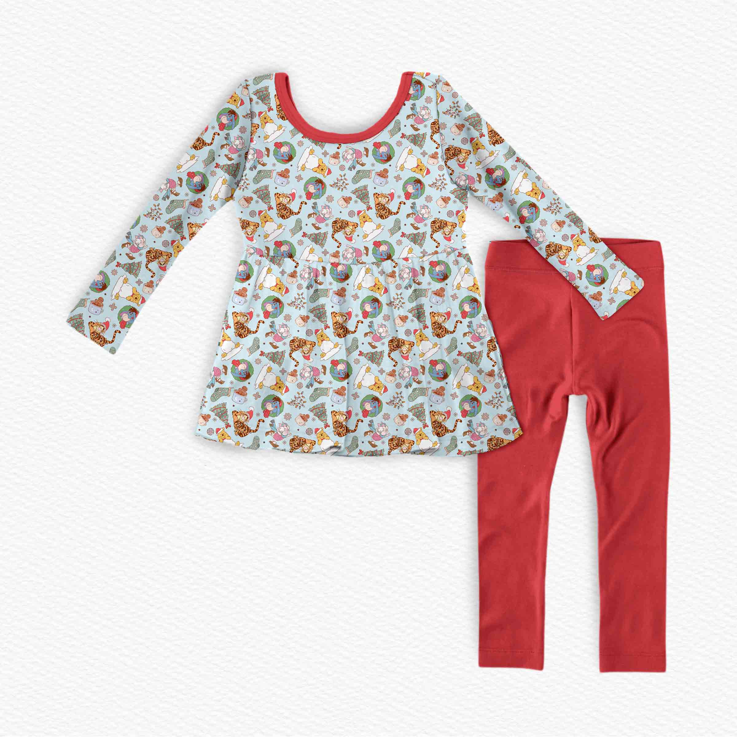 Magical Holidays Vintage Pooh Christmas - Bamboo Long Sleeve & Pants Peplum Set