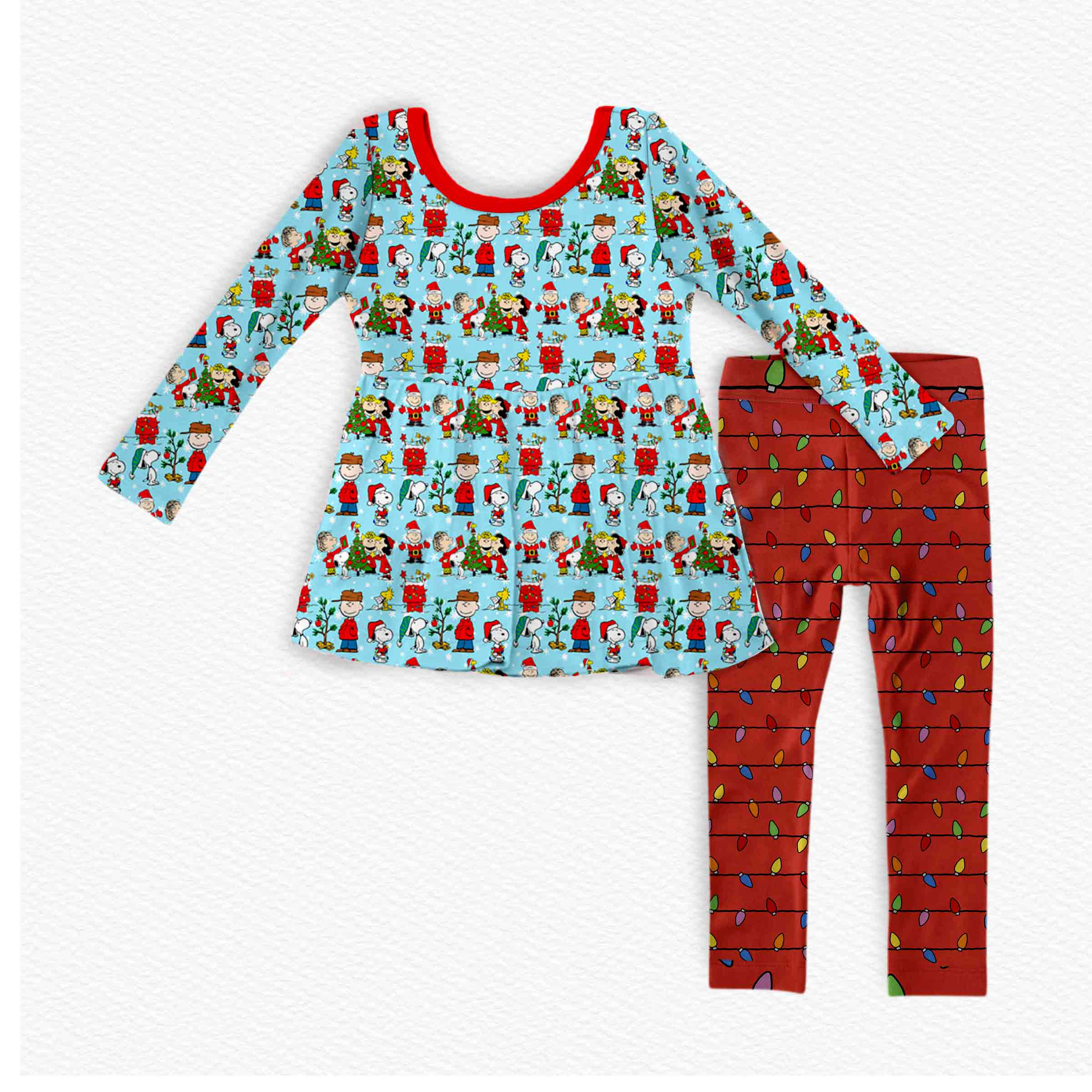 Feelin Festive Holiday with the Gang - Bamboo Long Sleeve & Pants Peplum Set