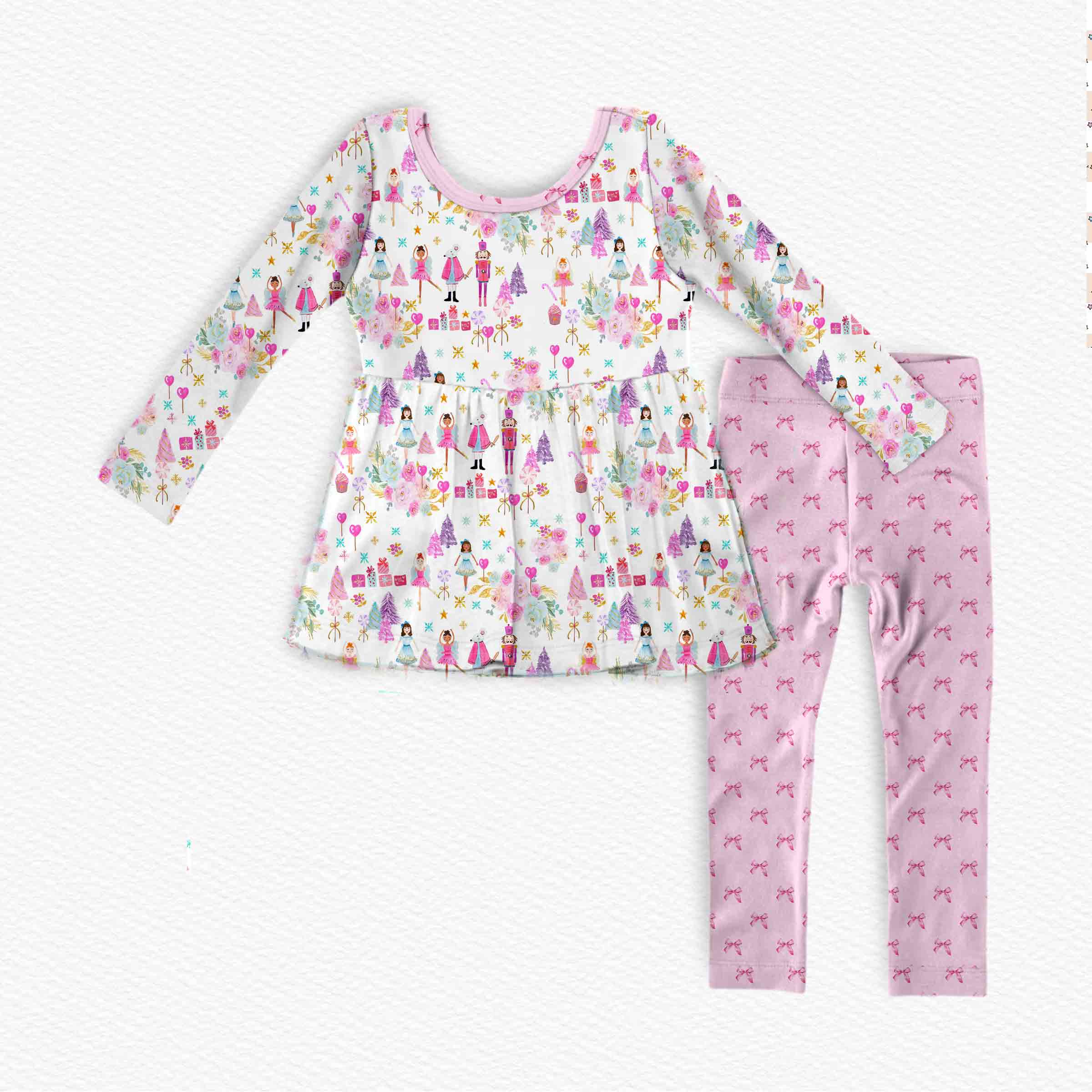 Happy Holidays Sugar Plum Fairy - Bamboo Long Sleeve & Pants Peplum Set