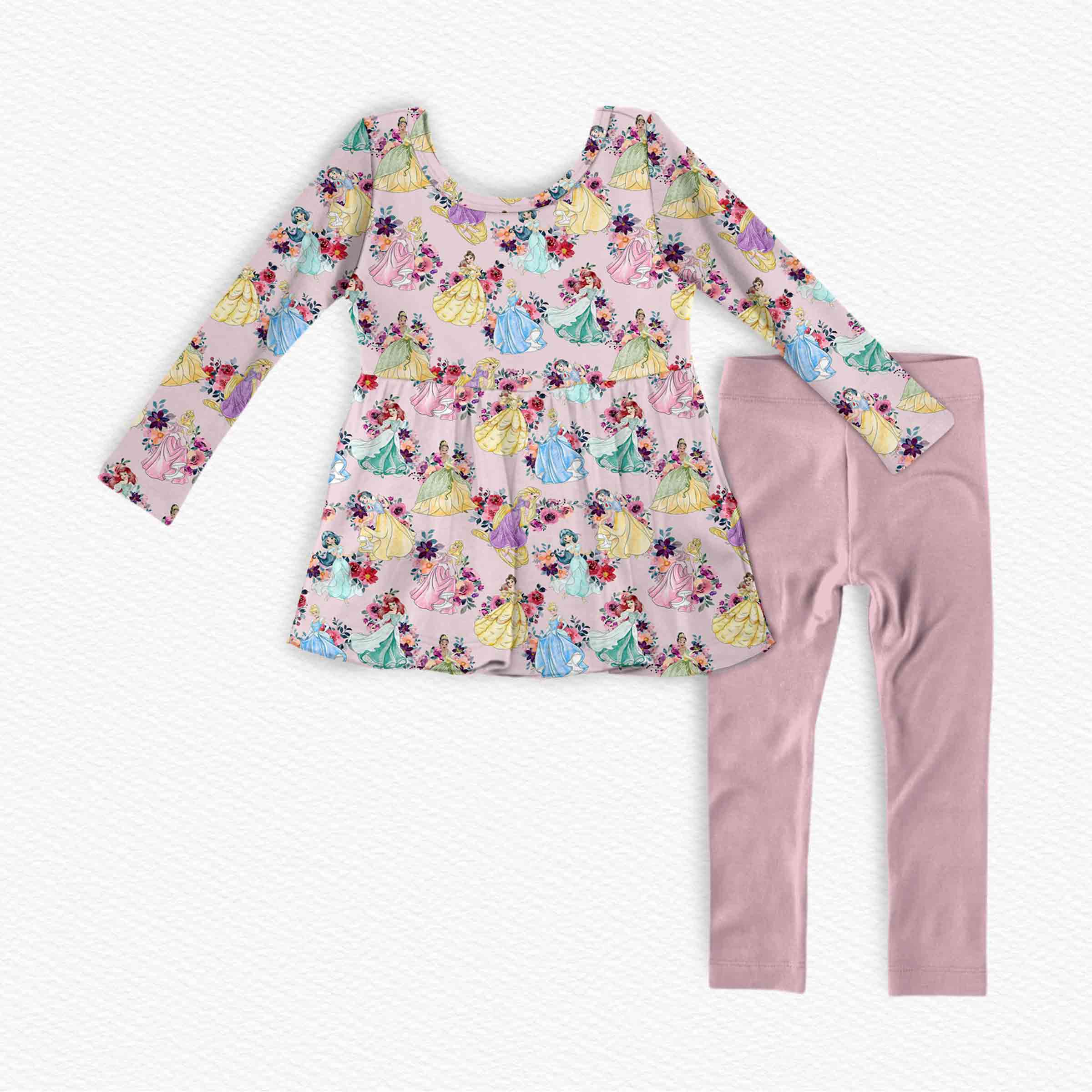 Castles & Cartoons Princess Blooms - Bamboo Long Sleeve & Pants Peplum Set