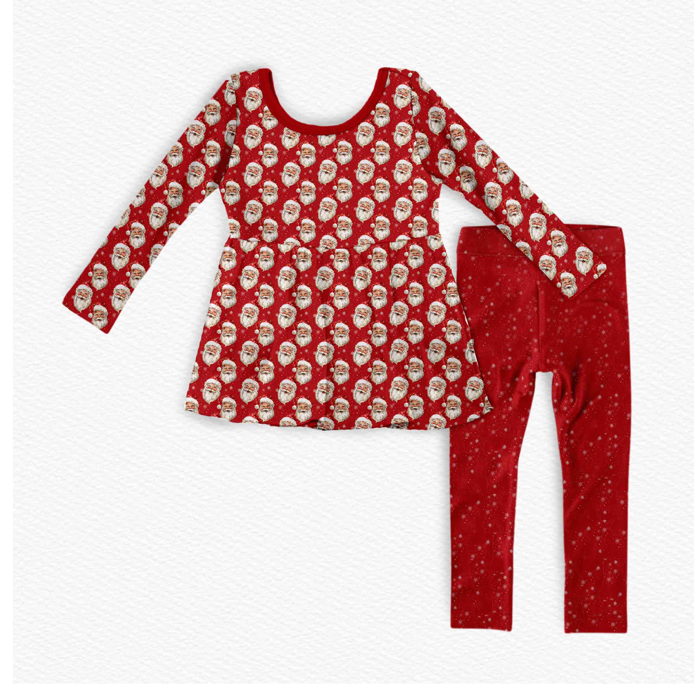 Feelin Festive Vintage Santa - Bamboo Long Sleeve & Pants Peplum Set