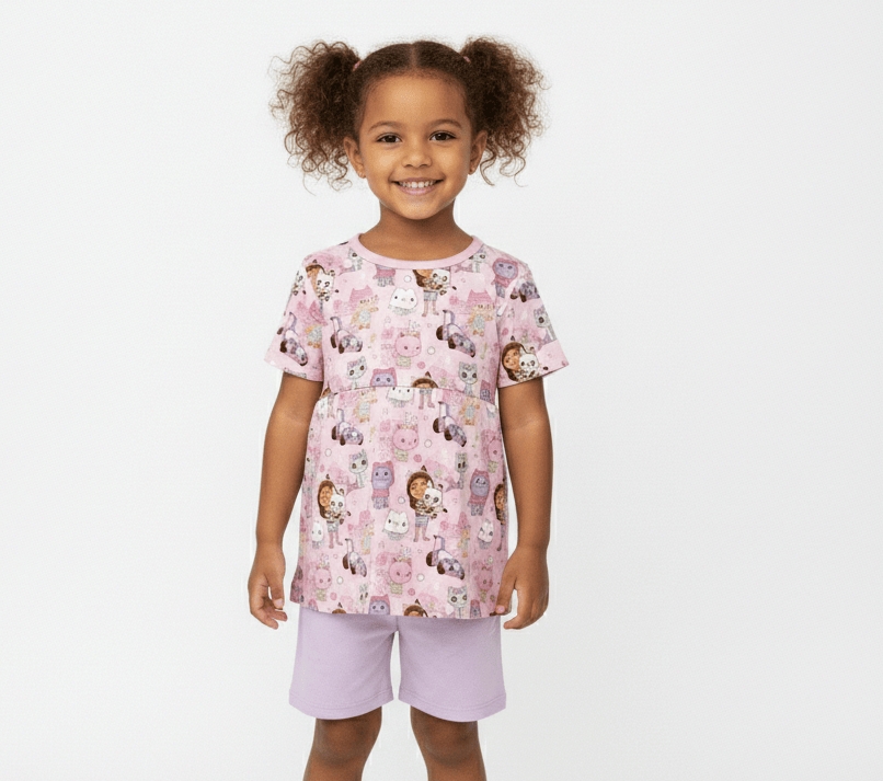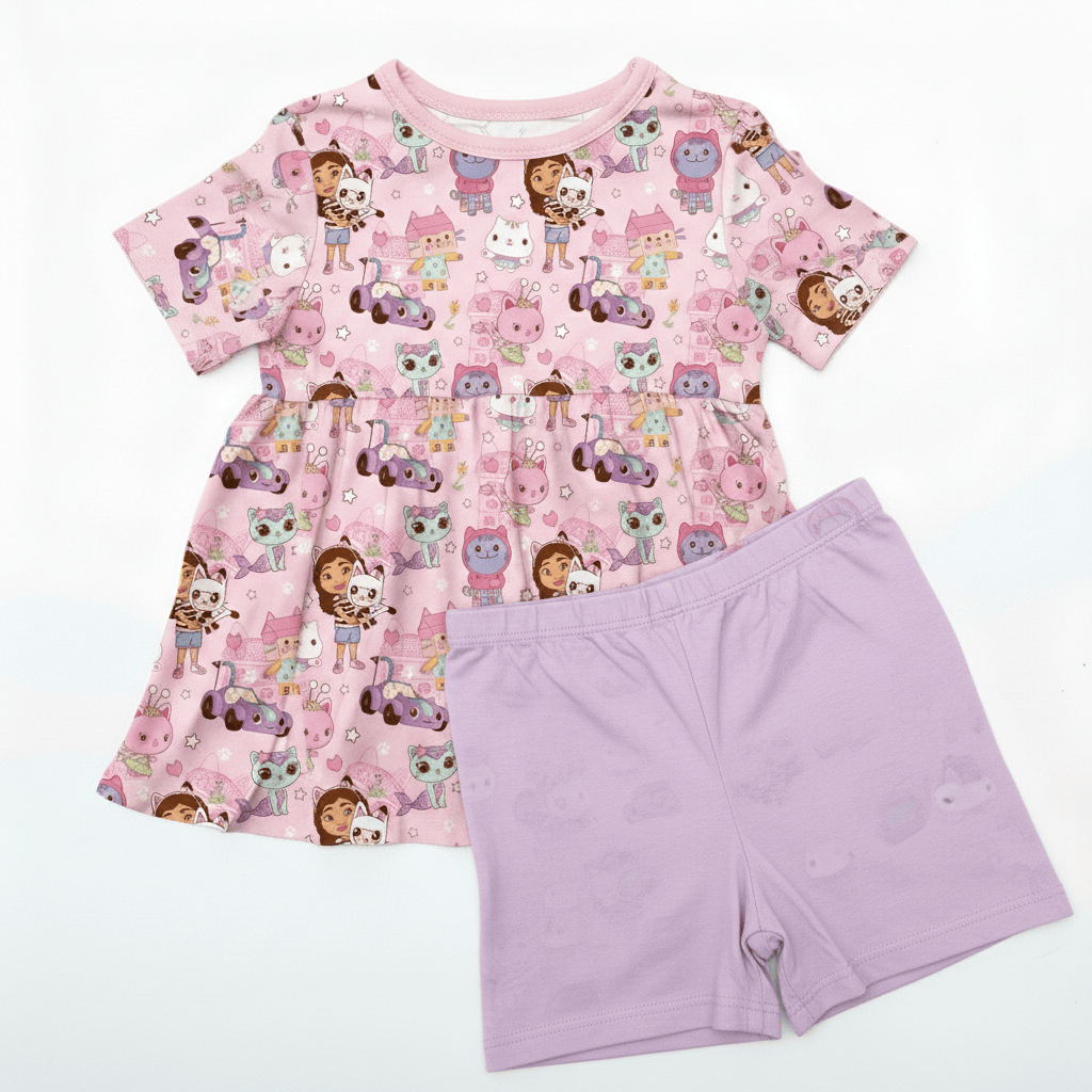 [Pre Sale] All the Fun Things Kitty Club - Bamboo Short Sleeve & Shorts Peplum Set (EST SHIP LATE MAY)