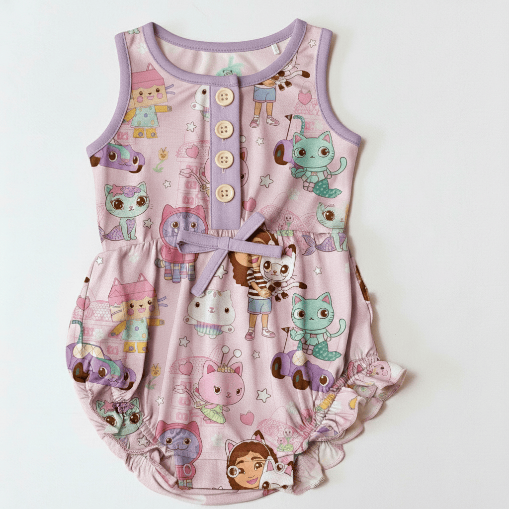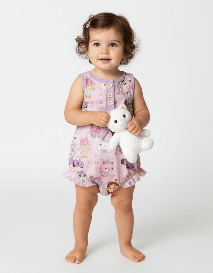 [Pre Sale] All the Fun Things Kitty Club - Girls Bamboo Short Romper (EST SHIP LATE MAY)