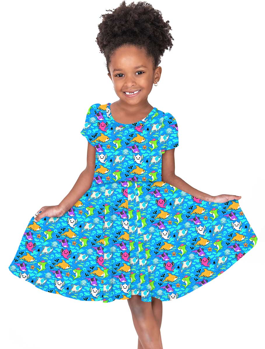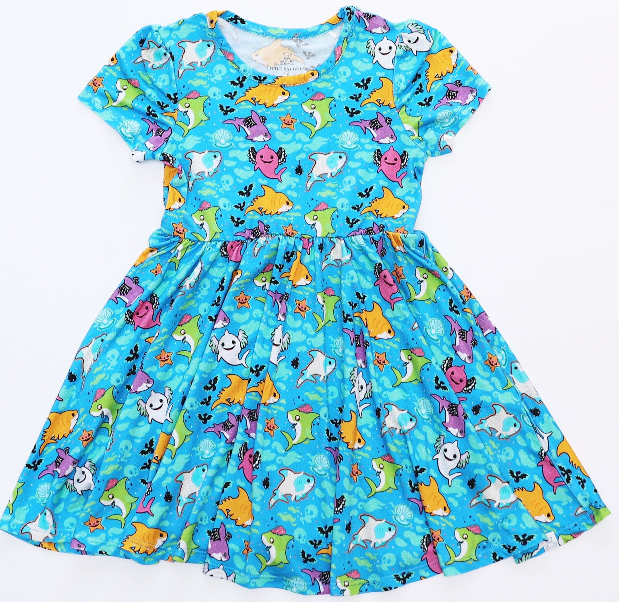 Spooky Sharks - Girls Short Sleeve Bamboo Twirl Dress